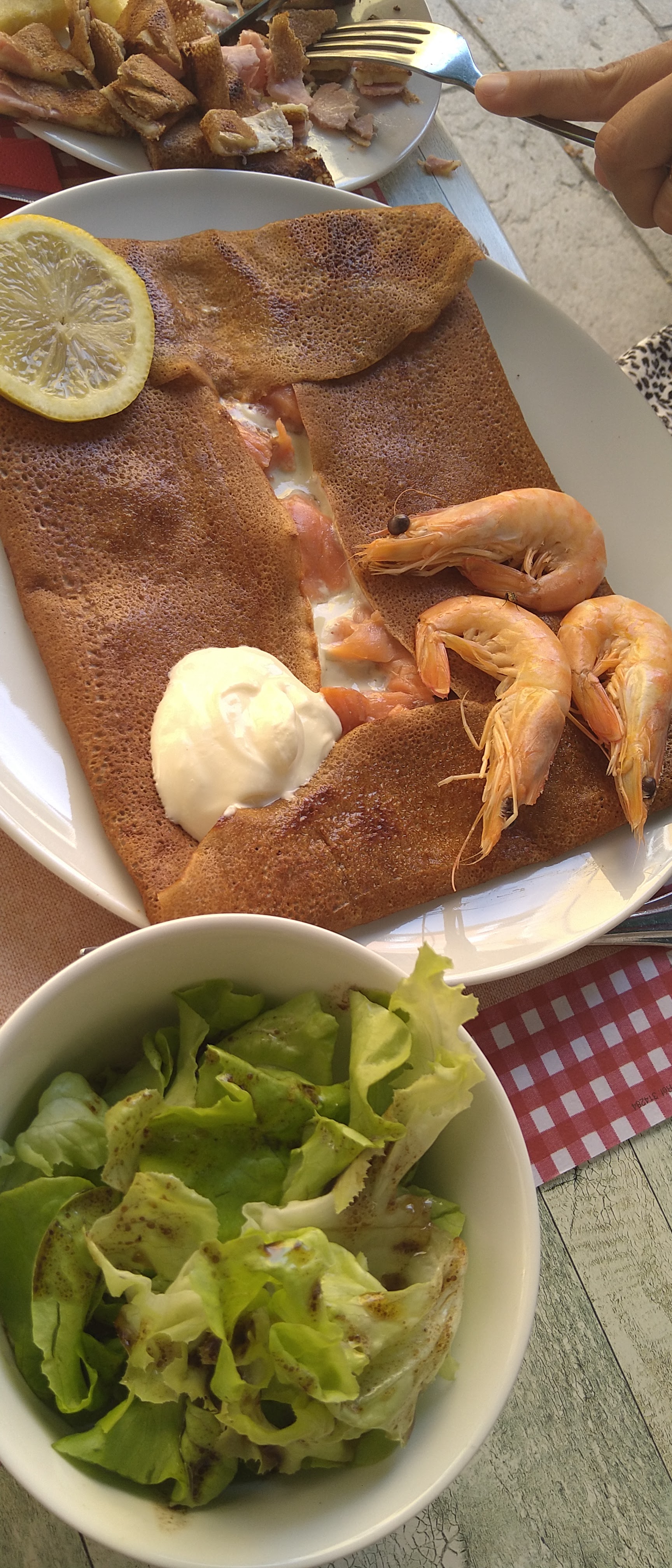Très bon repas simple bien servir je reviens vivement a recommandé carton vert ... 1 Repas enfants 1 galette novergien avec petit salade 1 assiette kebab frite et salade C est parfait Merci a vous