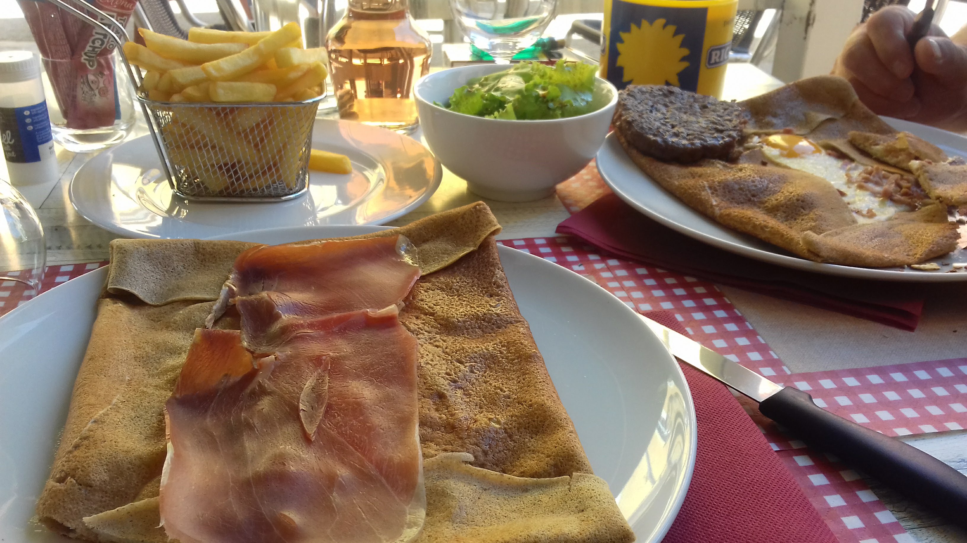 Que dire vraiment de ce petit restaurant... je me demande si les personnes laissant des avis ont déjà mangé ailleurs parce que honnêtement c'était vraiment très très limite. Crêpe déjà faite à la quelle on rajoute 2 ingrédients au choix, frites congelées, steak trop cuit, kebab de chez métro, nous étions attaqué par mouches et moustiques sur une table bancale. La pizza fait la taille d'une assiette! aucun goût, crêpe ou steak très fade. enfin bon, chacun ses goûts mais personnellement nous étions 5 et aucun n'a aimé son assiette nous étions tous très déçu. Nous sommes partis le ventre soulagé mais pas plein loin de la... Les serveuses sont agréables et souriantes voilà ce qui rapporte une étoile.