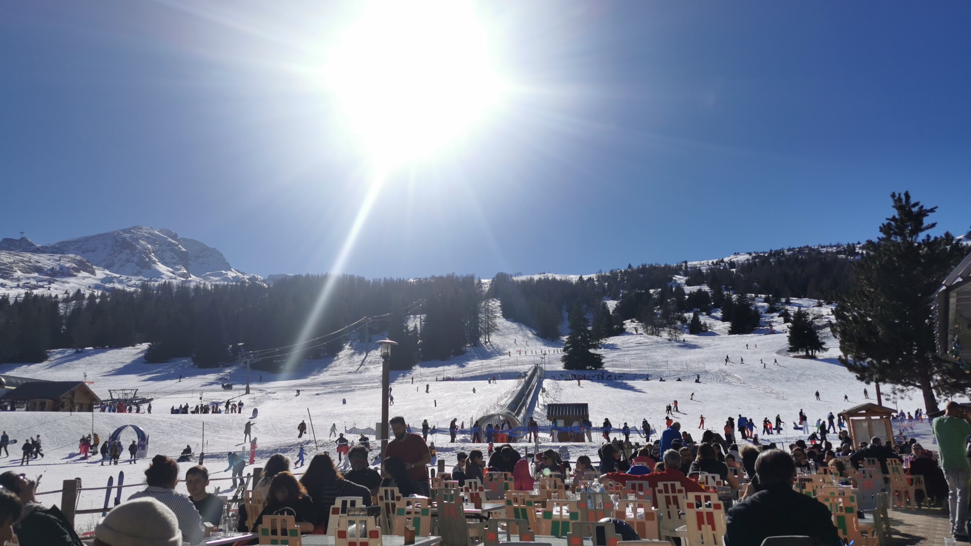 C’est un bon endroit pour profite du soleil, et en face des piste du ski, SAUF le serveur qui nous sert c’est n’est pas très bien, et change le prix à la dernière moment, juste parce que on est asiatique, c’est incroyable, je ne recommande pas, et c’est vraiment dommage !
