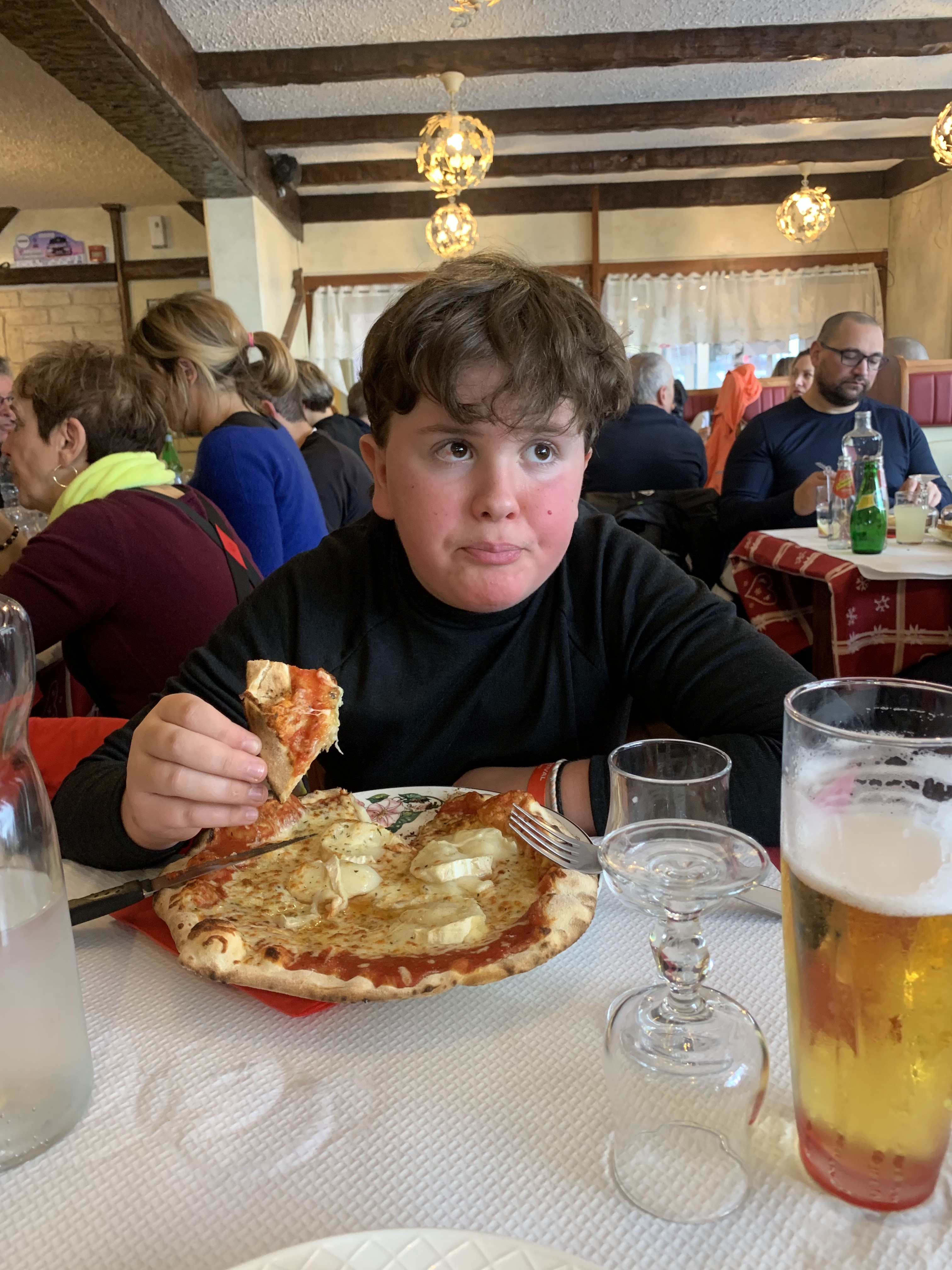 Tout d'abord, nous sommes allés dans ce restaurant pour manger des glaces au goûter, c'était délicieux, les coupes de glaces étaient bien présentées et délicieuses ainsi que la crème fouettée, l'attente est pas trop longue 10 minutes à peu près quand il y a pas de monde. De plus, nous sommes allés au restaurant le soir, certes il y avait beaucoup de monde et l'attente était légèrement longue mais le service était impeccable ainsi que les serveurs qui étaient respectueux et agréables, et qui essayaient de bien faire pour éviter l'attente pour le dessert à la fin. Nous avions pris des pizzas 4 fromages qui étaient vraiment bonnes comme vous pouvez le voir sur les photos. Ils ne proposent pas que des pizzas mais aussi de la raclette, du camembert rôti et même des oreilles d'ânes que ma soeur avait pris qui était vraiment bien préparée et appétissante. Je vous recommande vivement ce restaurant pour vos vacances à Superdevoluy !