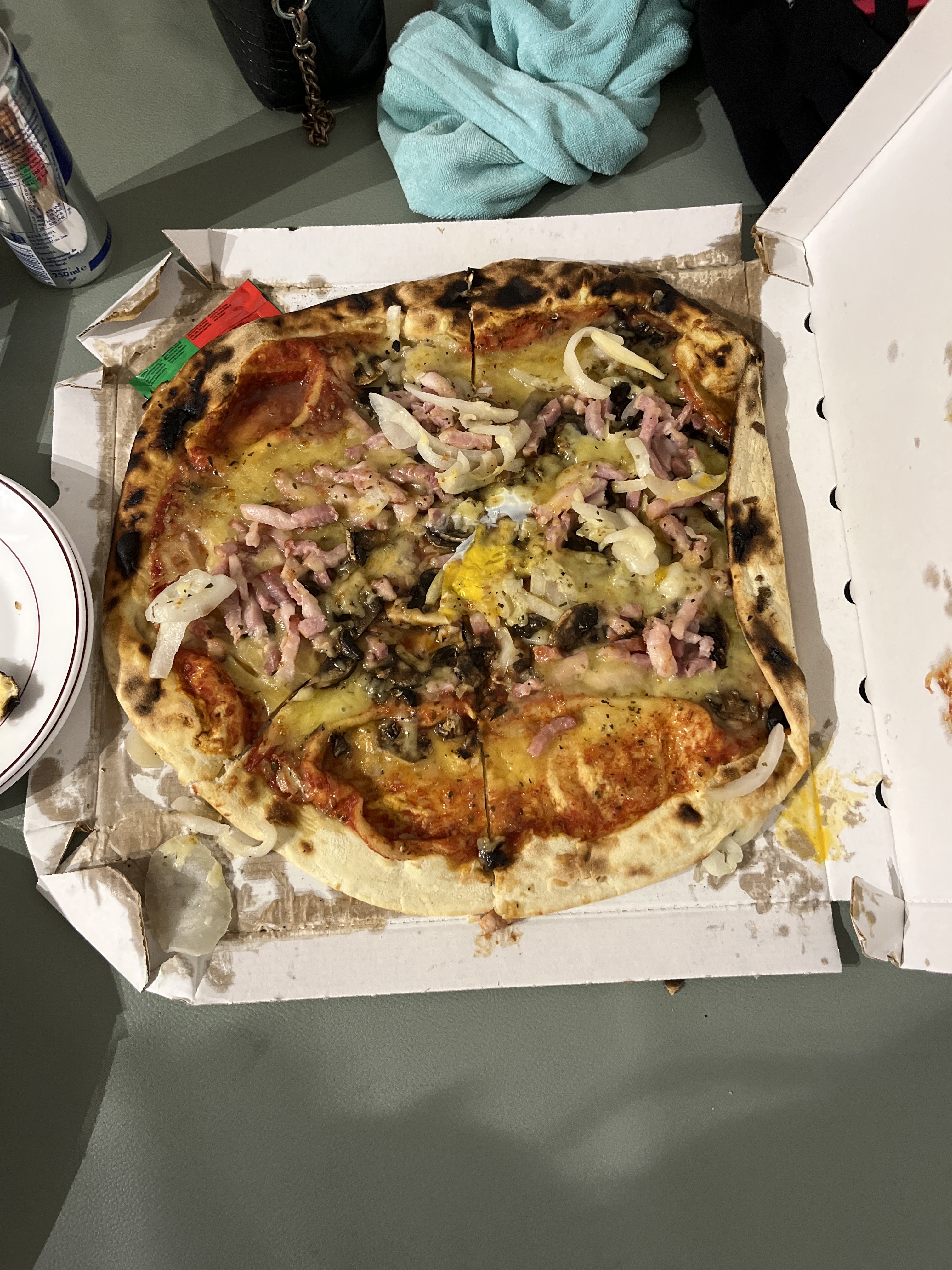 Très déçue Tout d’abord, concernant le service : Déplorable, serveur désagréable , qui nous ignore délibérément lorsqu’on dit que nous n’avons pas encore commandé mais prends la commande d’une autre table qui est arrivée après nous, pour ensuite un temps d’attente très long. Nous avons commandé des pizzas pour le soir, une fois les pizzas récupérées : Un cheveu trouvé à l’intérieur d’une d’entre elles, une erreur de commande sur l’autre, pizza reçue avec un œuf pas cuit ( aucune envie de prendre le risque d’être malade) la garniture que d’un côté de la pizza et plus d’oignons qu’autre chose, la pâte humide, qui reste collée au carton, la pizza était immangeable. En plus de tout ça, 45€ pour trois pizzas basiques, ça fait vraiment cher pour pas grand chose, surtout à venir récupérer (donc le service ne justifie même pas le prix). Aucune excuses par téléphone, pas de proposition de remboursement mais les pizzas ont été remplacées. (Encore une pizza avec un œuf … mais bref), toujours aucune excuse seule justification « l’erreur est humaine ». Nous nous retrouvons donc avec 6 pizzas que nous ne mangerons probablement pas. L’affluence ne devrait pas être une raison de négliger les clients et SURTOUT la sécurité alimentaire.