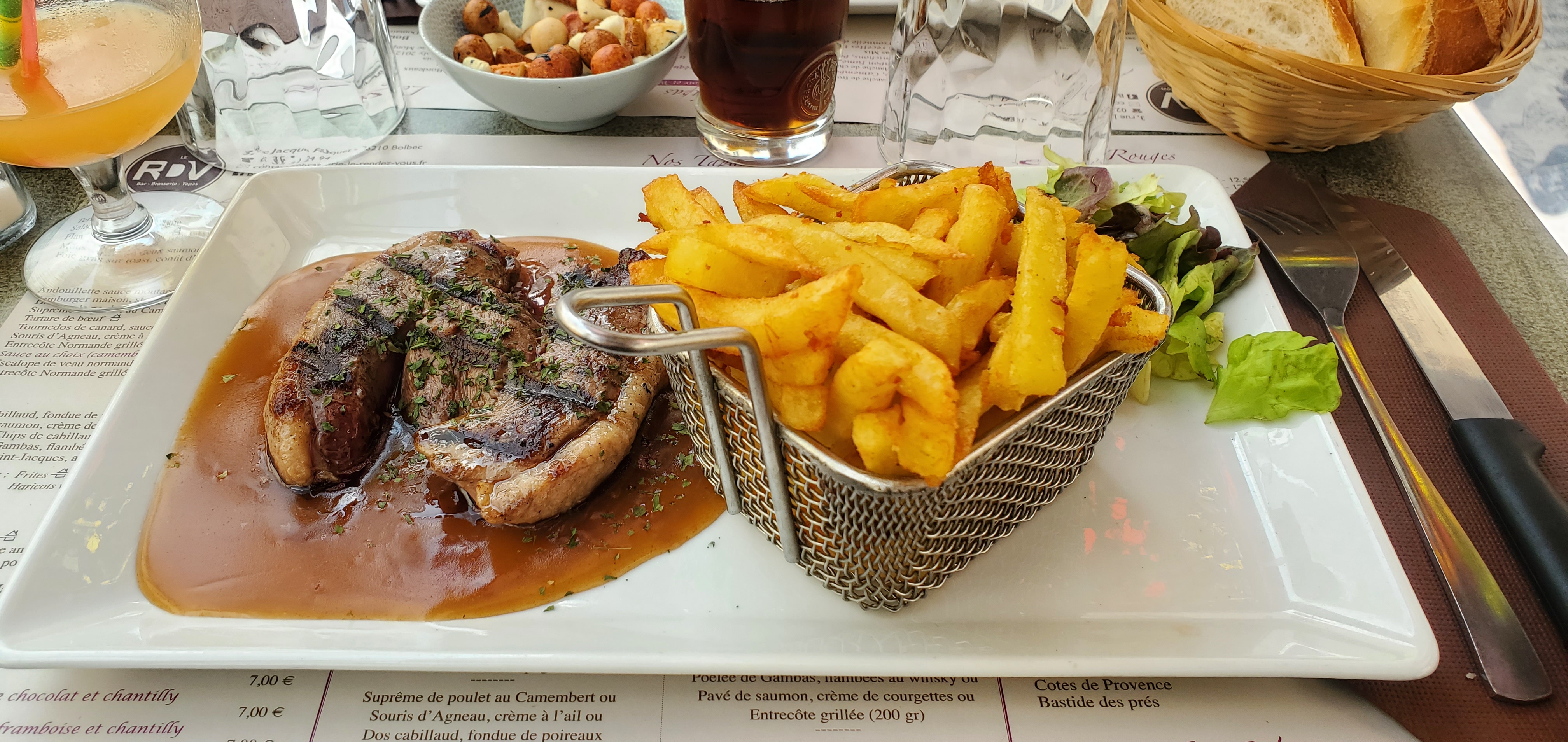 A éviter. Prix élevés pour des produits décongelés. Seules les frites étaient bonnes. Le flan normand est une arnaque. Je ne comprends pas les commentaires positifs, les gens ont perdu le sens de la qualité des choses
