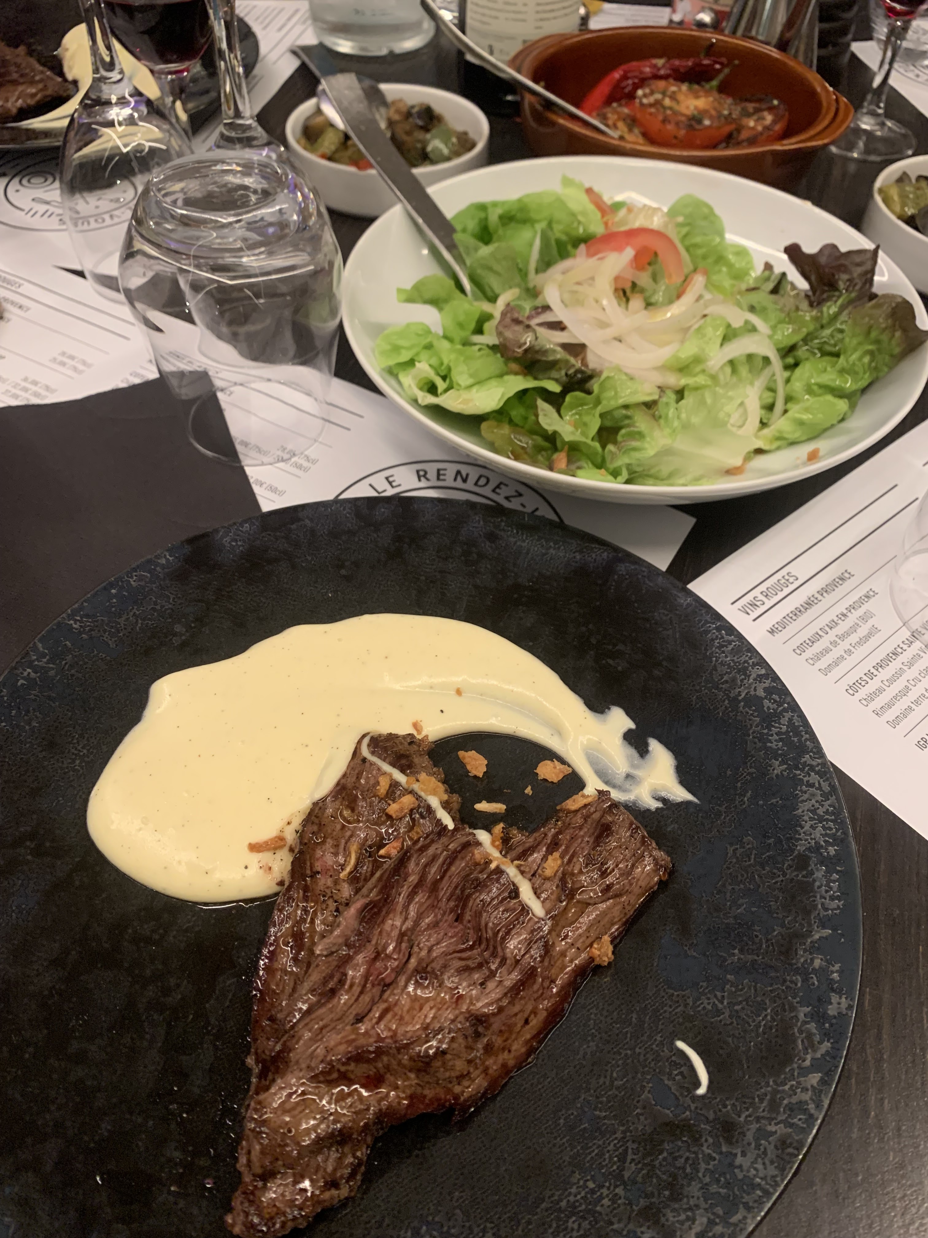 Je rédige cet avis après avoir dîné au Rendez-vous ce samedi 10 août. Cette note à deux objectifs : - le premier à visée cathartique. En effet, le rapport qualité/prix est excessif selon nous. - le second à visée constructive. Nous avons commandé deux mojitos (tièdes, trop sucrés, peu pétillants, avec citron coupé trop petit donc sans jus), une entrecôte avec frites maison (molles et trop peu cuites pour certaines) et de la seiche à la plancha (manquant cruellement d’assaisonnement, accompagnée de peu de légumes fades). Néanmoins nous soulignons le cadre, le sourire des serveuses, la bonne volonté de celles-ci (ayant proposé de réajuster le cocktail dont elle a avoué ne pas en maîtriser la préparation), le respect de la cuisson de la viande et la mise en bouche offerte (malgré un morceau de plastique dans la verrine). Nous ne pouvons vous en dire plus sur les desserts car nous nous sommes abstenus. Une erreur de caisse a failli me faire payer 10€ supplémentaires, la note s’élevant déjà à 55€ !!! Ce qui est pour le coup déjà suffisamment salé (sans mauvais jeux de mots) 😉