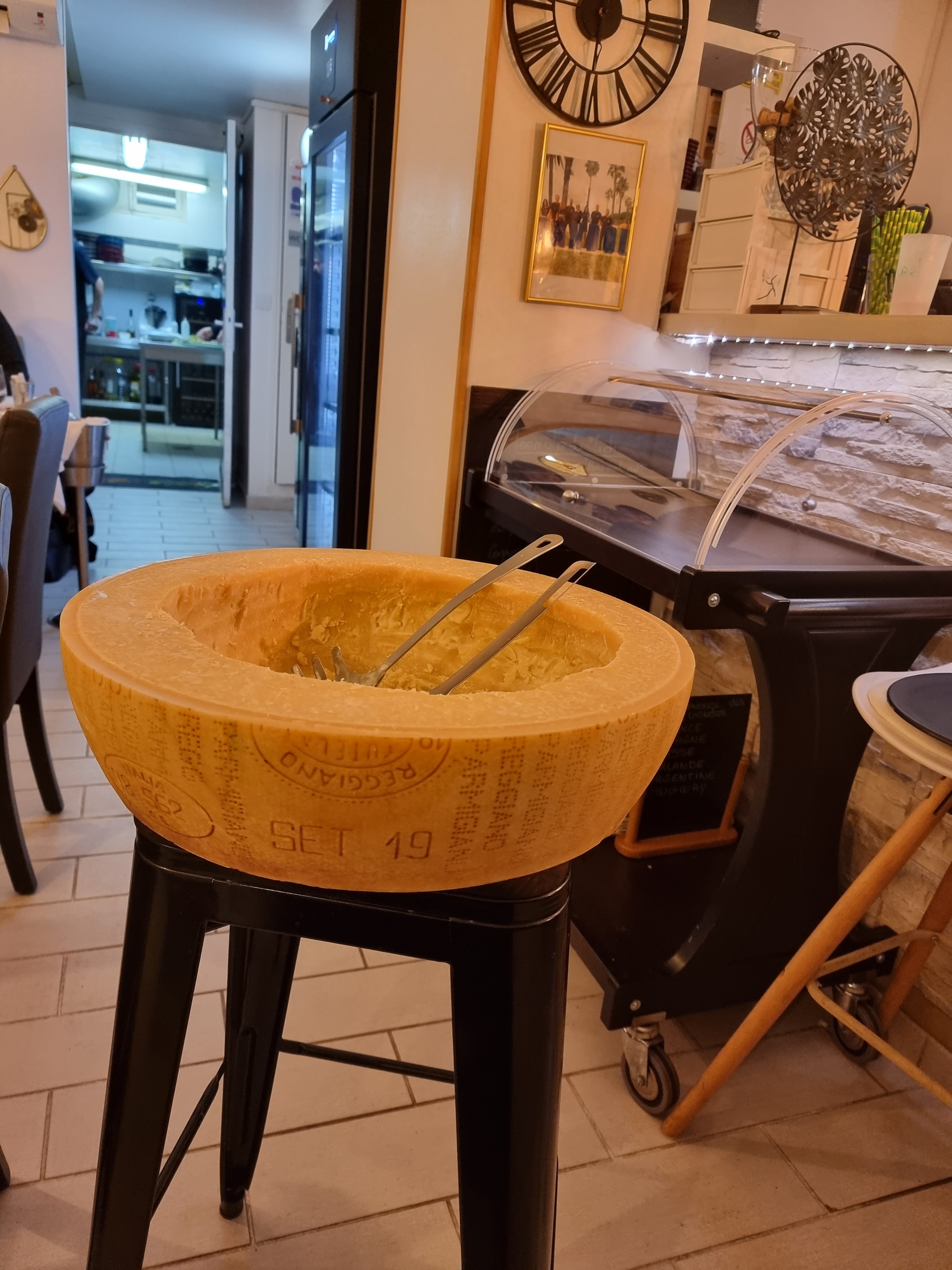 Nous avons testé leur spécialité : les pâtes dans la meule de parmesan, un régal ! Je recommande 😊