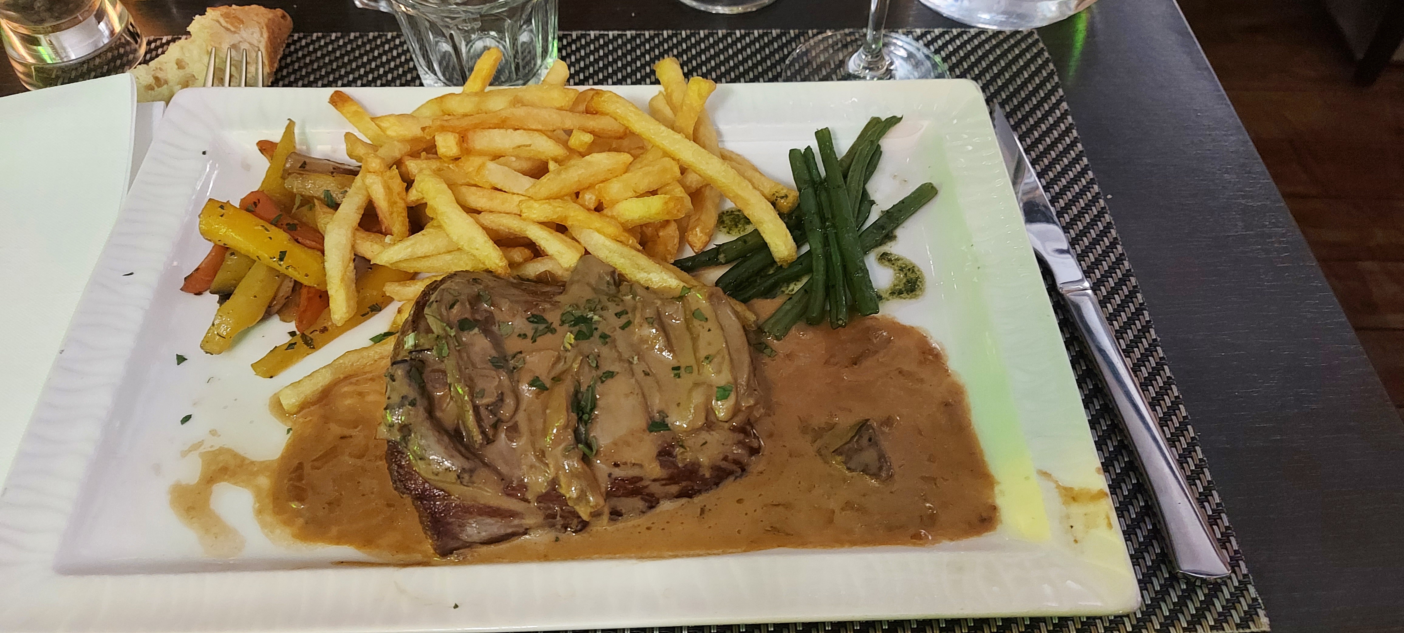 Je comprend même pas les avis négatif...boeuf rossini, foie gras sauternes , salade, magret aux agrumes,toast, vin... J'aime tjs mes plats et j'y vais svt...Les gens autour félicite tjs et reviennes.. Donc ou les gens sont blindés et donc habitué à une cuisine de chez chibois ou bocuse ou c'est la concurrence jalouse qui émet des jugements... Je leurs conseil donc l'indien à 20mètre.. Prix dément 3x plus cher que la et des plats infectes avec des desserts inexistants mais horrible! Ou mieux l'amandier réputé école de xuisine grand chef... La vous serez heureux je connais personne qui y a manger plus de deux fois... 40minutes entre chaques plats..des serveurs et maîtres d'hôtel bon à claqués (sauf le blond seul pro de la maison), plat froid, vin bla'c servi malgré refus car 40minute avec un verre de blanc sans plats..... Allez y l'amandier c bon pour les râleurs !