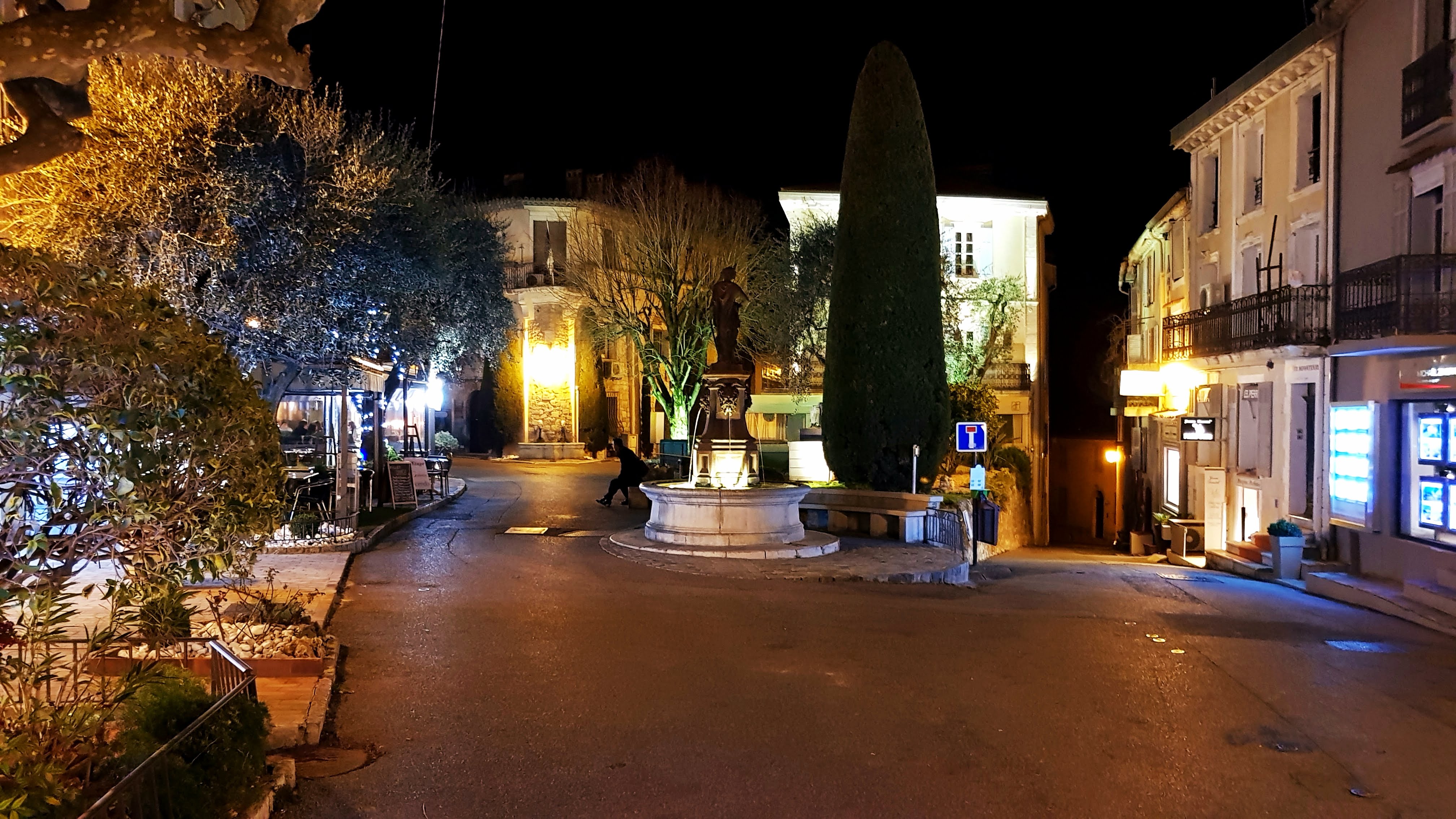 au milieu de la place du village. petit restaurant avec une cuisine savoureuse, du bon vin et un excellent service. abordable.