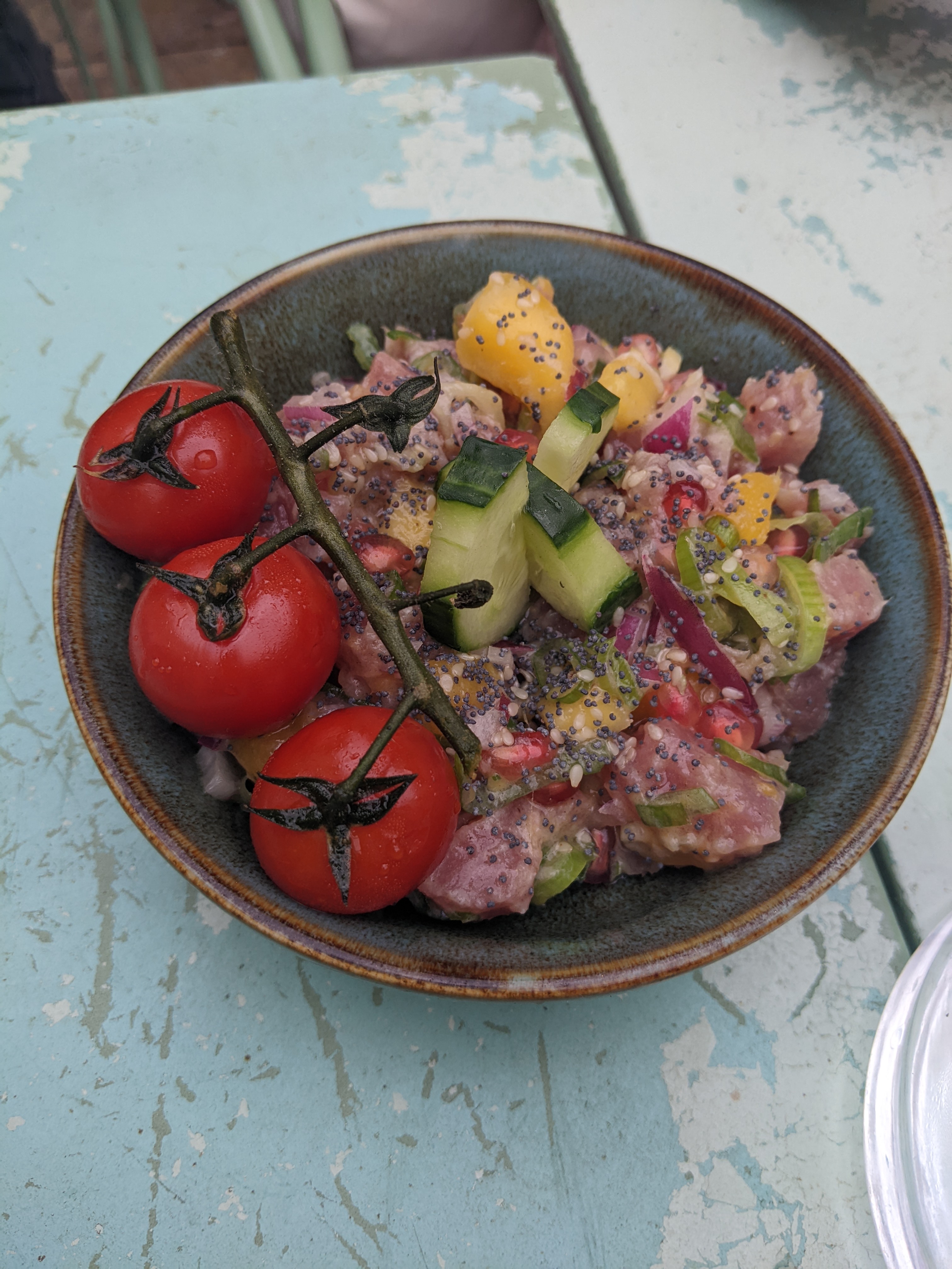 Personnel attentif et très sympa. Il fait bon sur la terrasse. Avec un thé glacé maison bien frais, on y est très bien. On avait testé le ceviche et la tagliata, tous les deux très bons et à prix correct. Service rapide en plus!
