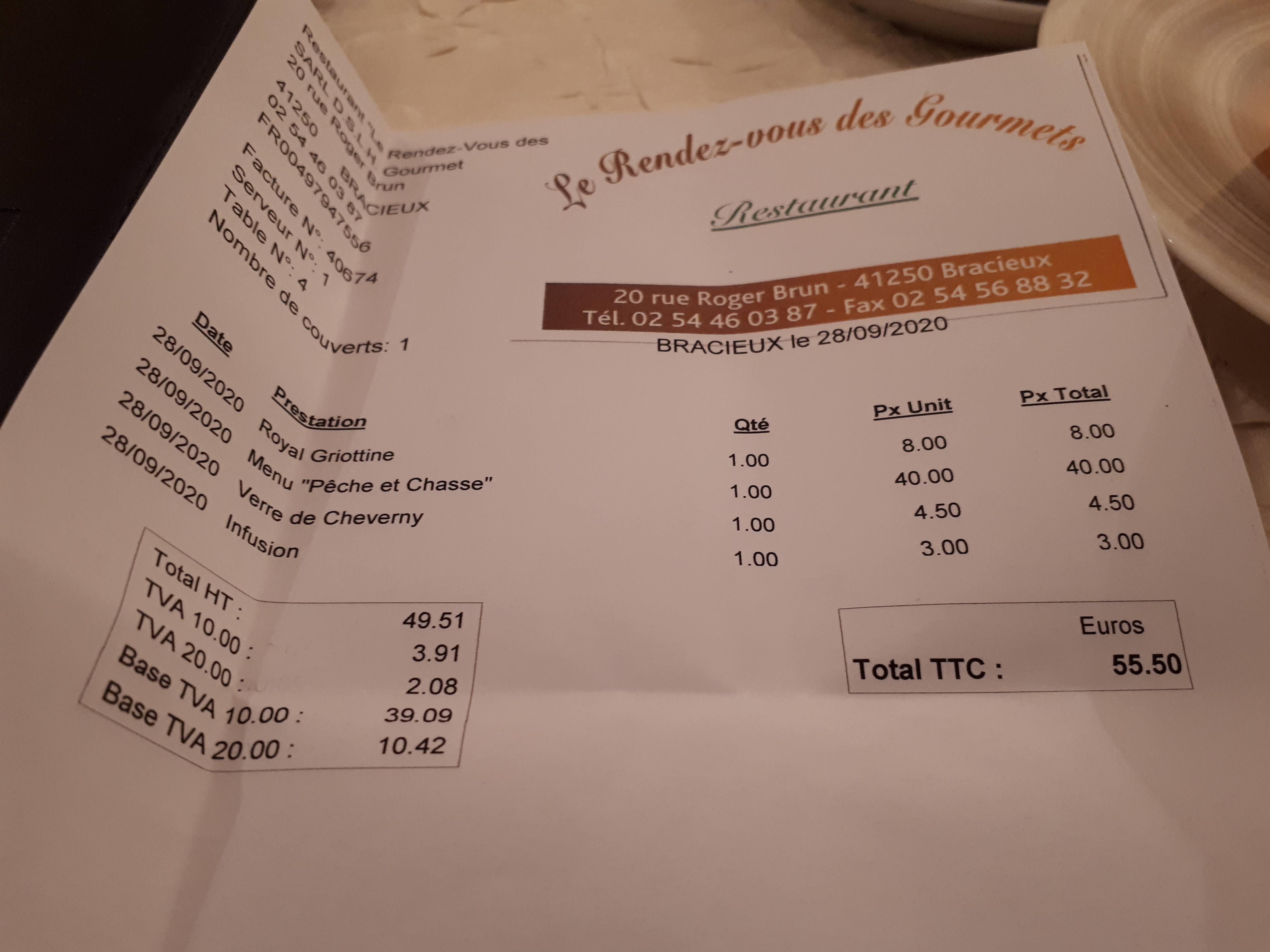 Le rendez-vous des gourmets porte bien son nom! Nous nous sommes régalé de l'entrée au dessert. Des portions généreuses, des goûts rassurants et régressifs qui nous replongent dans les recettes de nos grands mères, mais en encore meilleur ! Merci pour ce bon dîner, si nous repassons par Chambord nous reviendrons pour sûr !