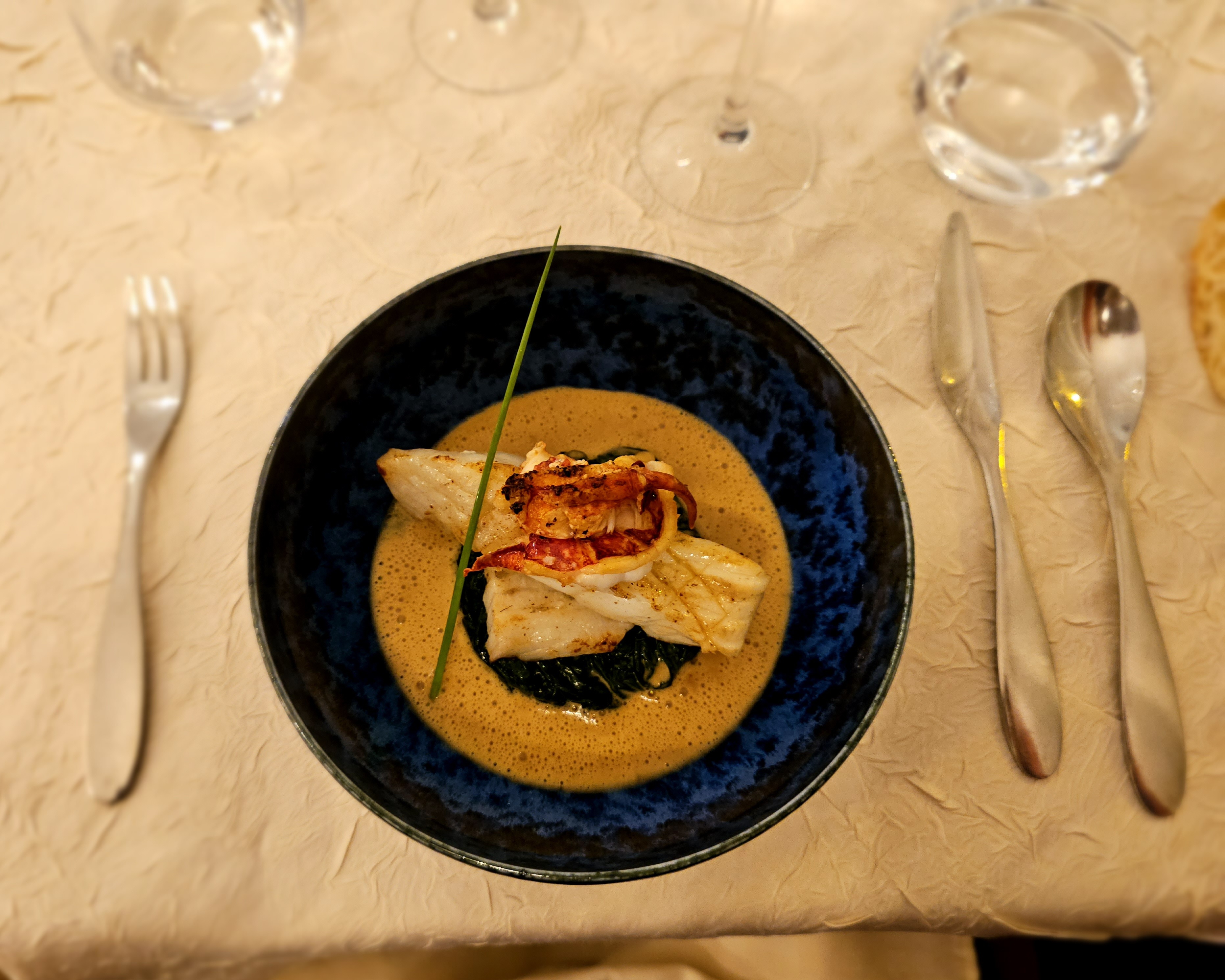 Un dîner avec nos cousins d'Italie... Nous avons choisi le premier menu. Plats présentés avec beaucoup de soin. Saveurs harmonieuses et recherchées. Le plaisir des yeux et du palais. Parfait. Service très agréable. Salle joliment décorée, claire, ambiance agréable. Que dire de plus... une envie de revenir, sans aucun doute.