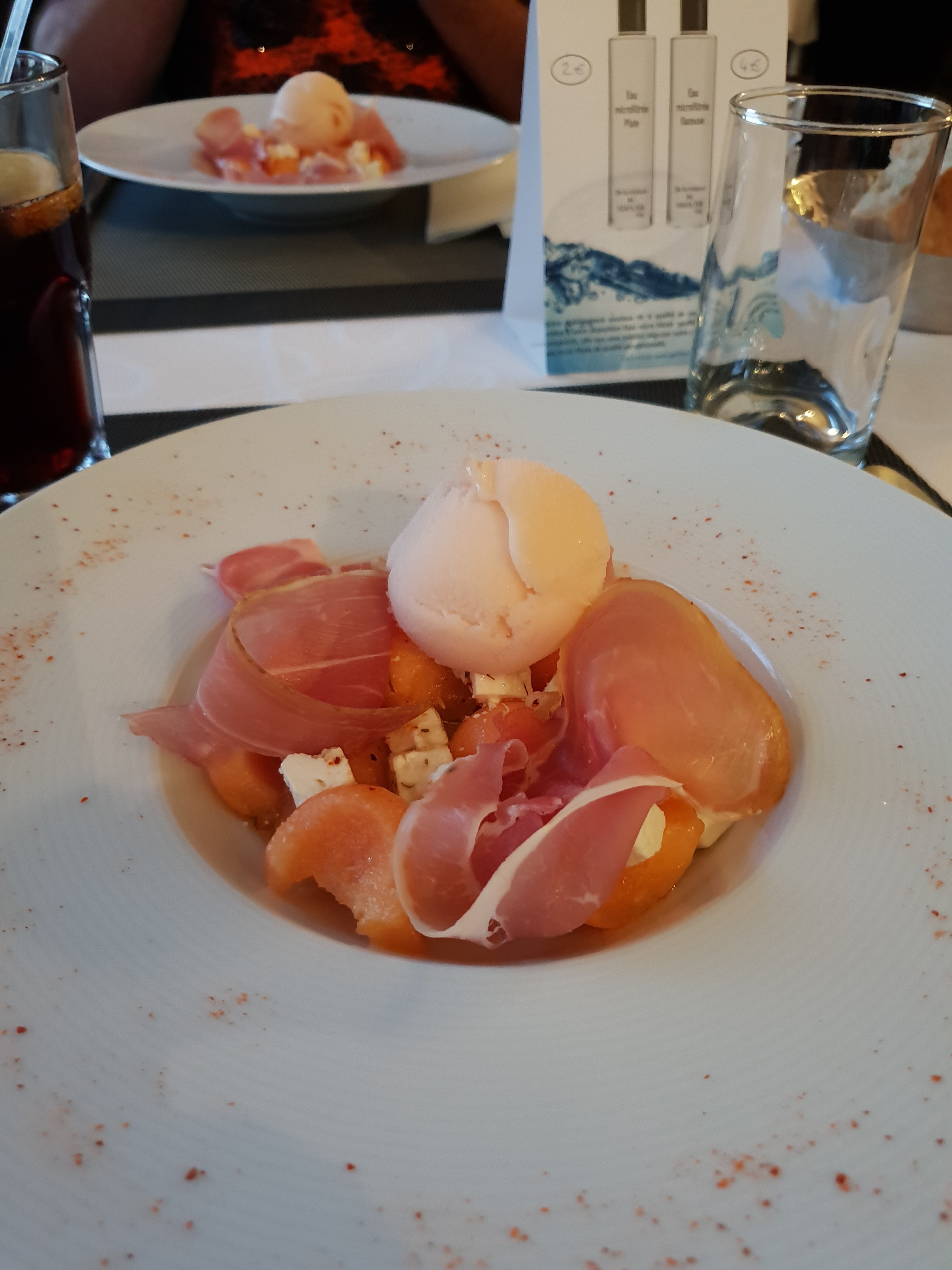 Très belle assiettes, tout est froid et sortie du congélateur encore congelé à l intérieur et bon à l extérieur demandé à reprendre par le cuisinier encore pire qu avant cramé au chalumeau au dessus bref nul mais très belle endroit sinon