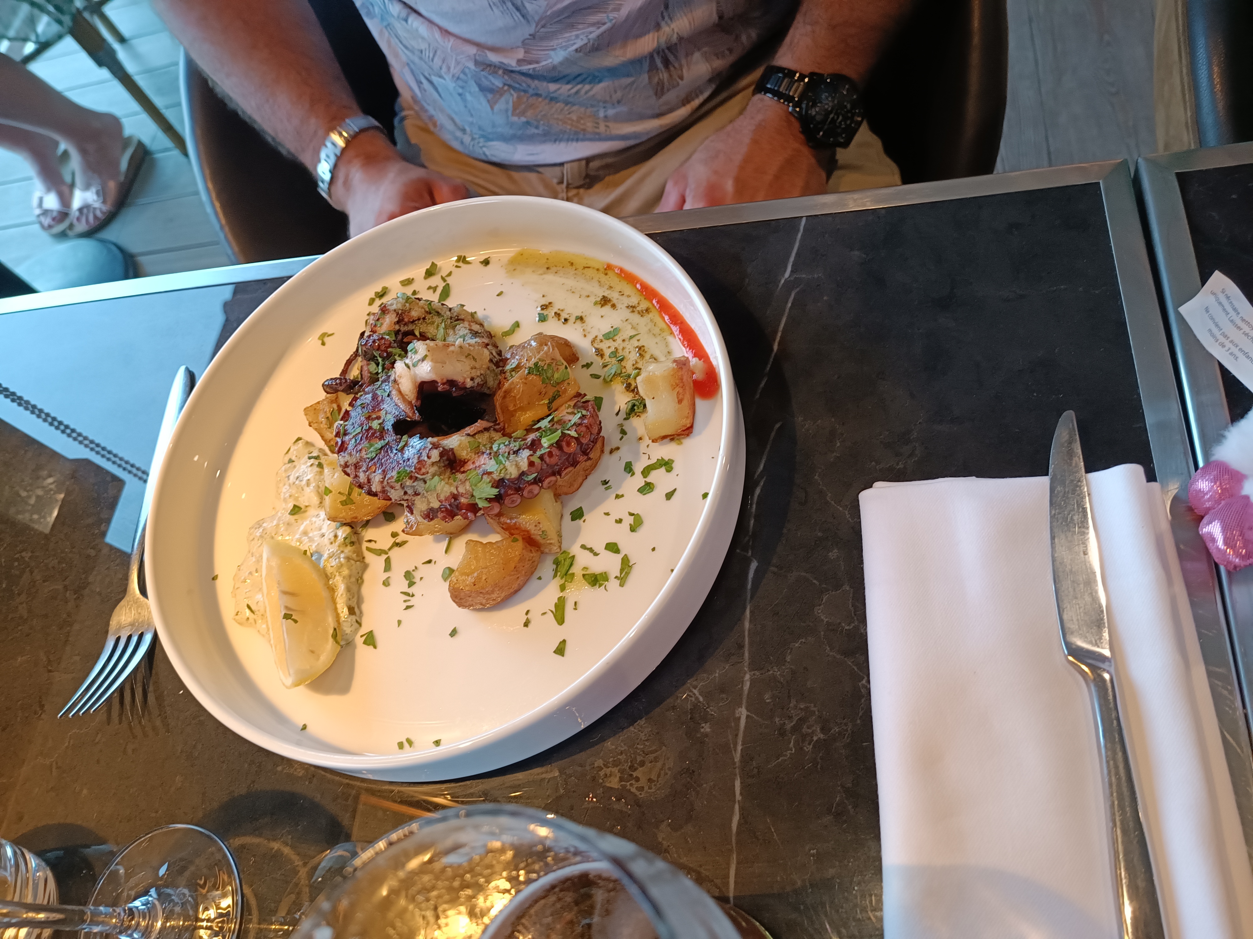 Bon restaurant. Les plats étaient bons et les tarifs sont plutôt corrects. J'aurais aimé une plus grosse quantité de poulpe mais cela vient surement de cette periode d'inflation des prix. Le personnel est très sympa et très arrangeant.