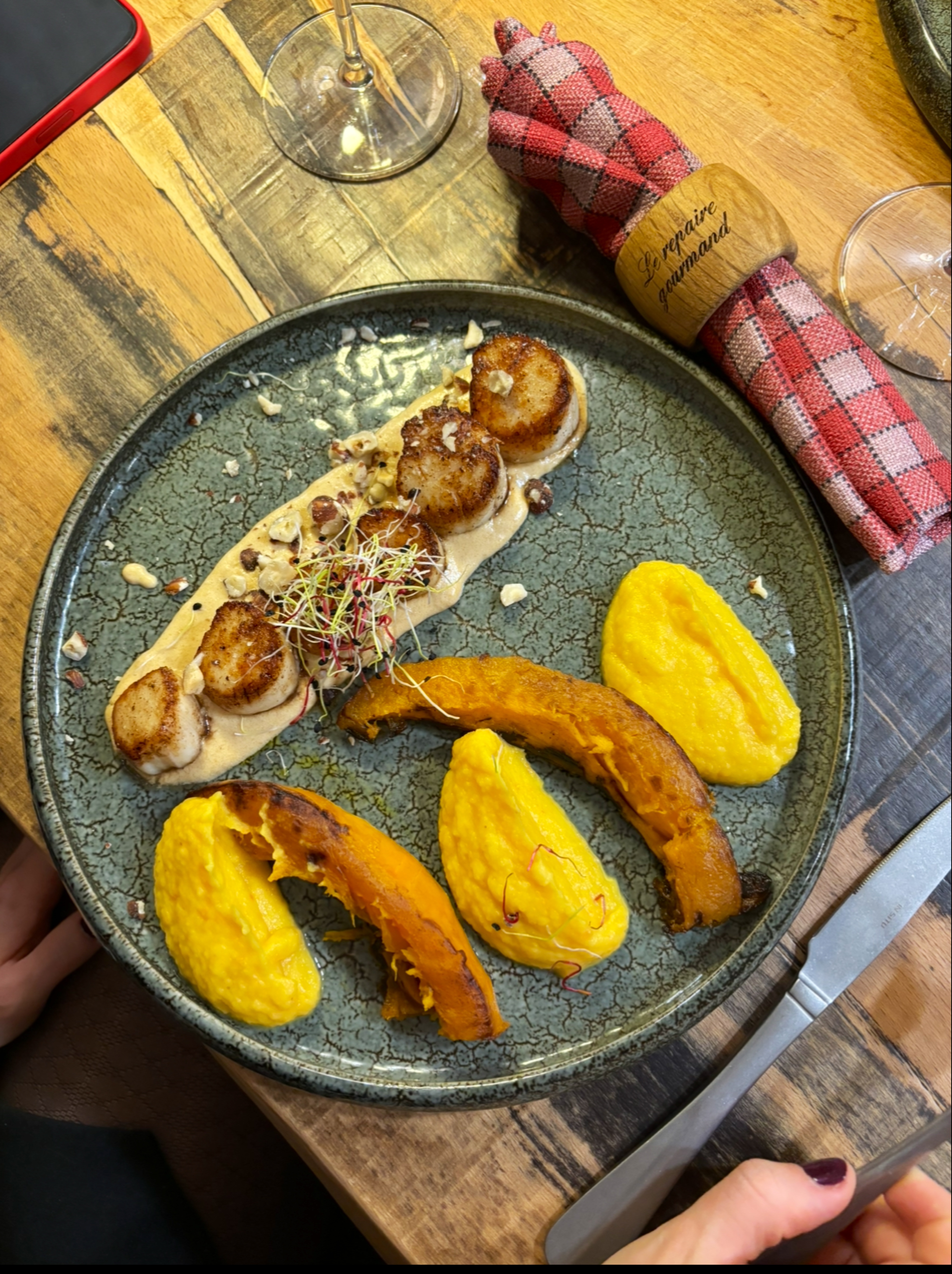 Bonne cuisine, de l'apéritif au dessert quel regal, nous avons pris des saint Jacques qui étaient bien cuites et l'accompagnement super bon ,je recommande sans aucun problème, nous y retournerons sans hésiter.