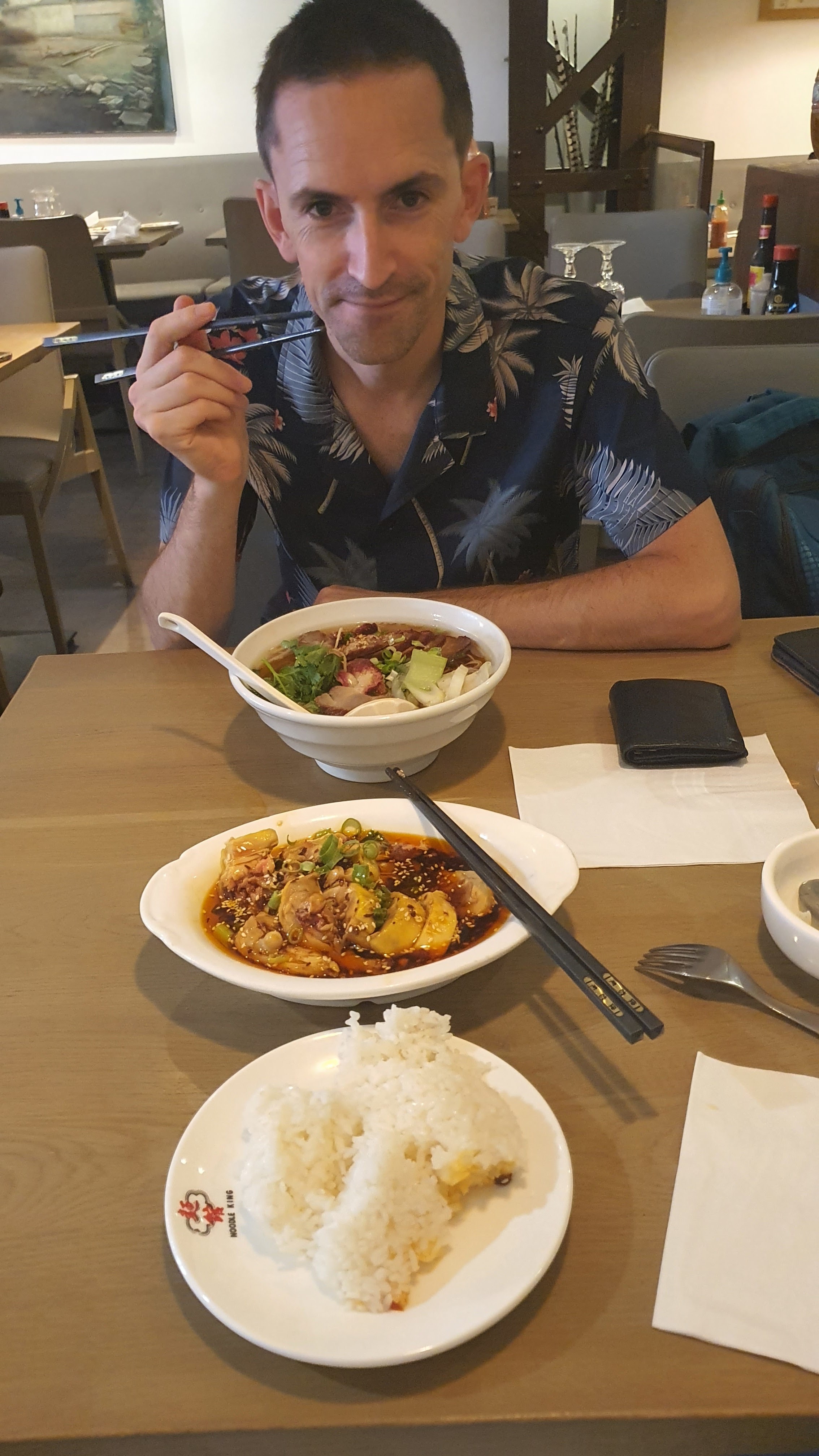 Très bon resto. Bon accueil. Servis rapidement. Un vrai resto chinois dont les plats sont réellement des spécialités. Il y a de l'espace, c'est agréable et très pratique si vous avez des enfants et bébé en poussette. Cependant, si le resto est assez plein, cela peut-etre vite bruyant. Pensez à vous installer vers l'entrée en face du comptoir. Je recommande vivement pour le déjeuner, comme une bonne cantine car ce n'est pas très cher et c'est bon public. Pour le soir, préférez plutôt un resto encore plus spécialisé ou plus raffiné... Je vous conseille également de ne pas prendre des plats classiques (style udon ou vermicelles) mais préférez des spécialités pour innover et gouter des plats goutus. Attention aux piments pas toujours mentionnés.
