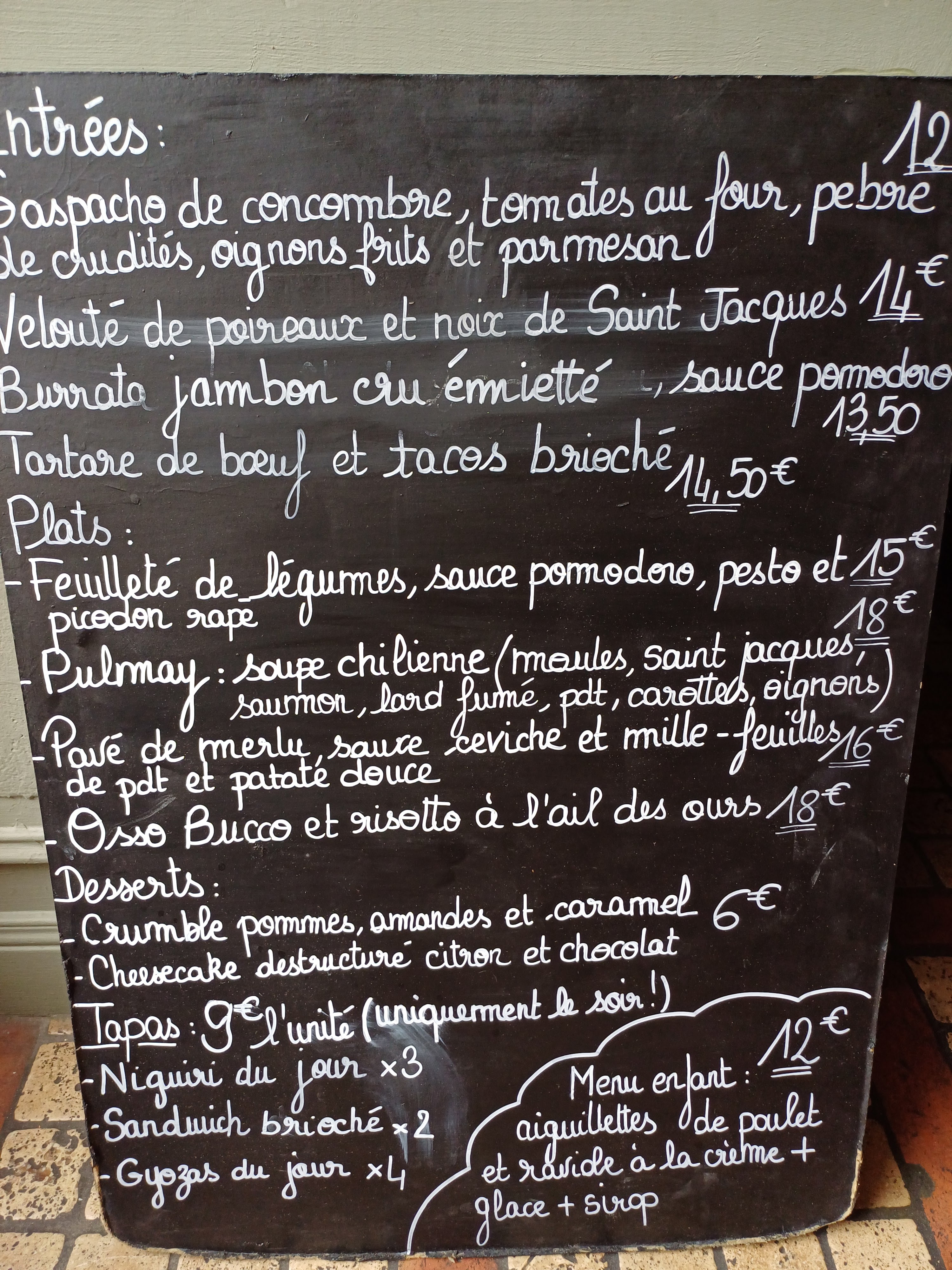 Les plats étaient très bons, la carte ne comporte que 3 plats, mais ils sont réussis. Ce que j'apprécie le plus: le menu enfant, aiguillettes de poulet + ravioles, ça change du steak frite!