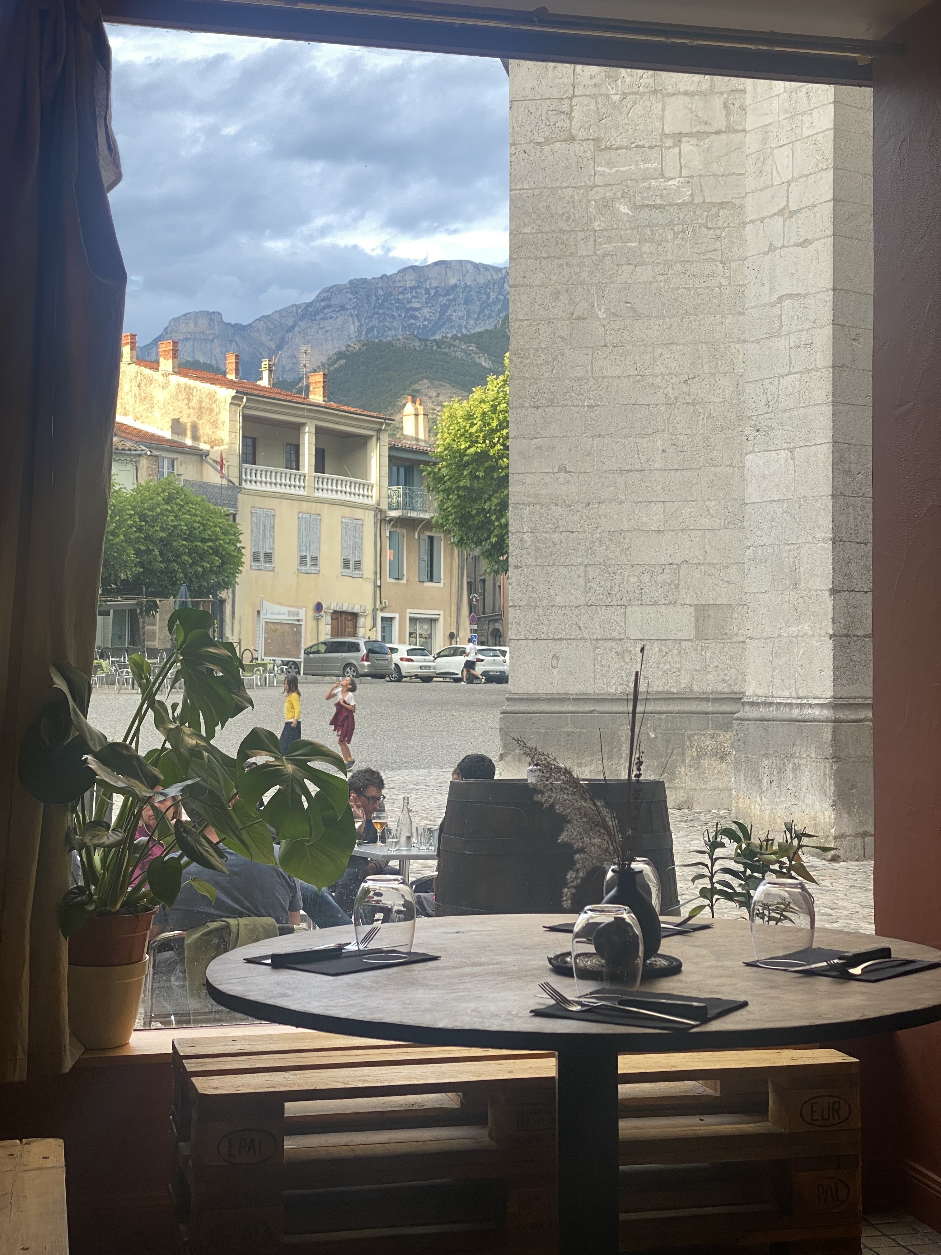 Sur la place de Die. Excellent service, bonne nourriture, fortement recommandé !