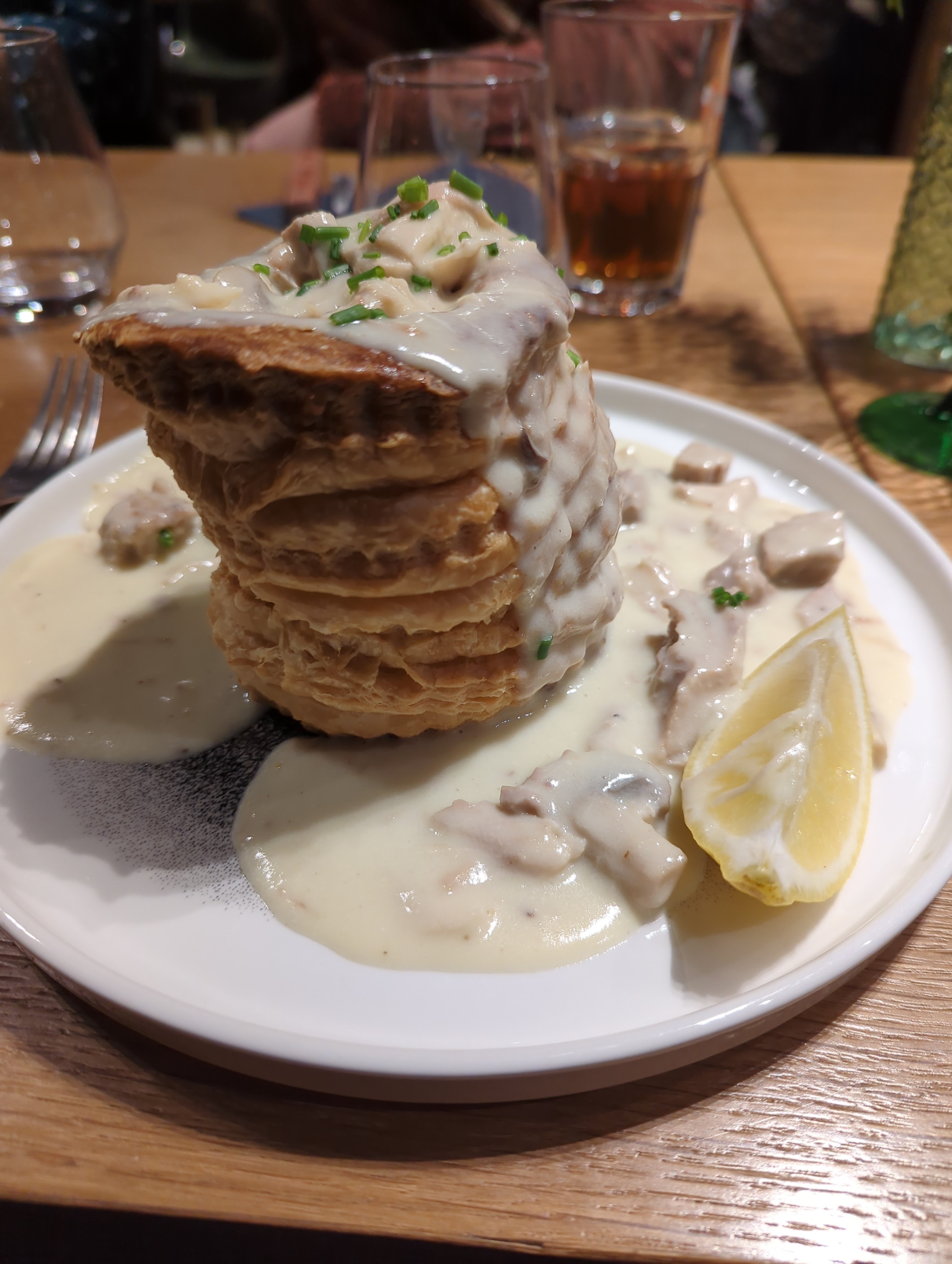 Super restaurant très sympathique. Intérieur sobre en bois. Plat excellent ! Pour ma part entrecôte de veau un peu rosé un délice. Café gourmand top.