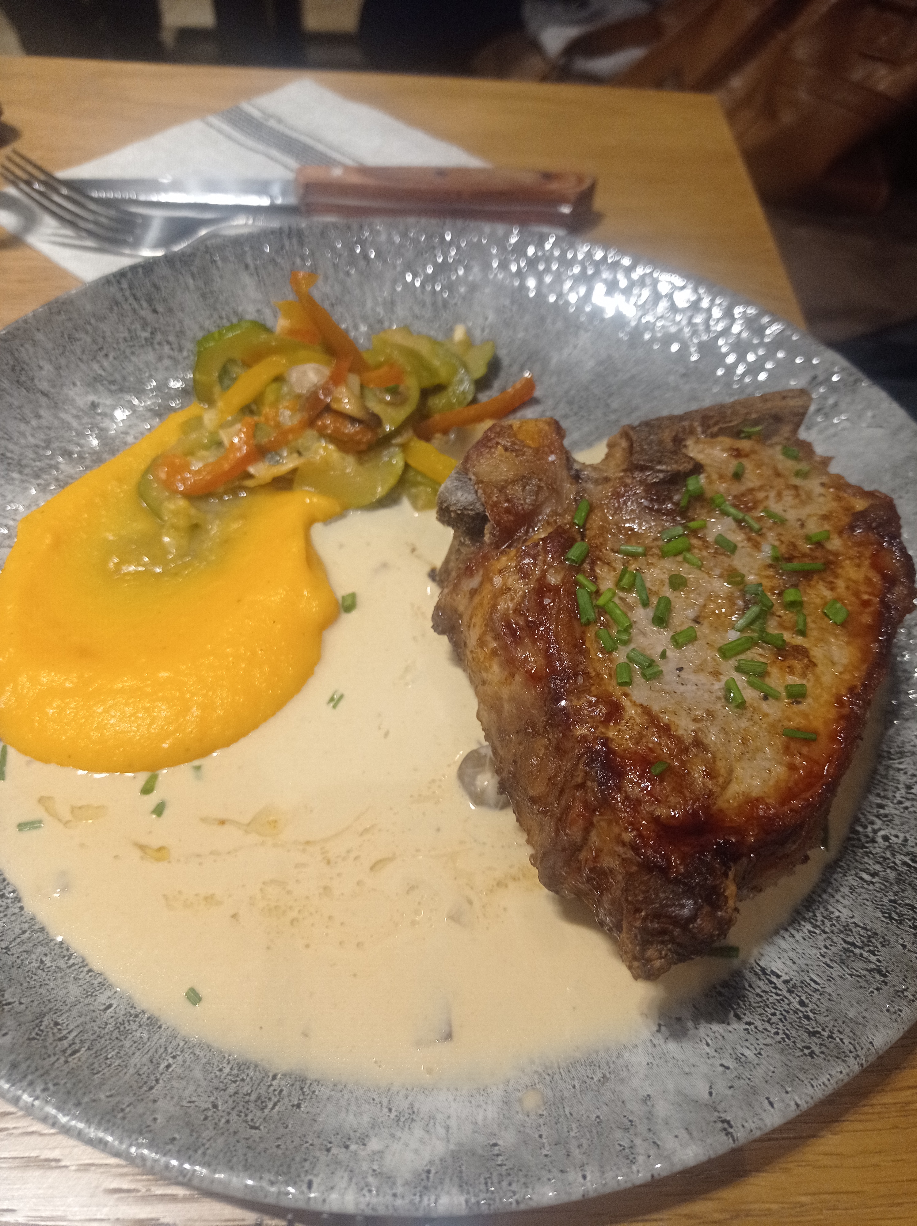 Tres joli restaurant, cadre vraiment sympa. Repas excellent (côte de bœuf pour nous), cuisson de la viande irréprochable 👍. Par contre le restaurant est hyper bruyant, et le service est vraiment très long, dommage car il y a vraiment un sacré potentiel ...