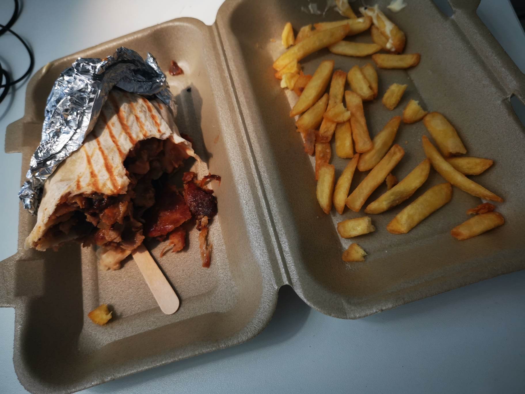 Un délicieux kebab ici. Pain un peu dur, mais la viande et les frites étaient excellentes