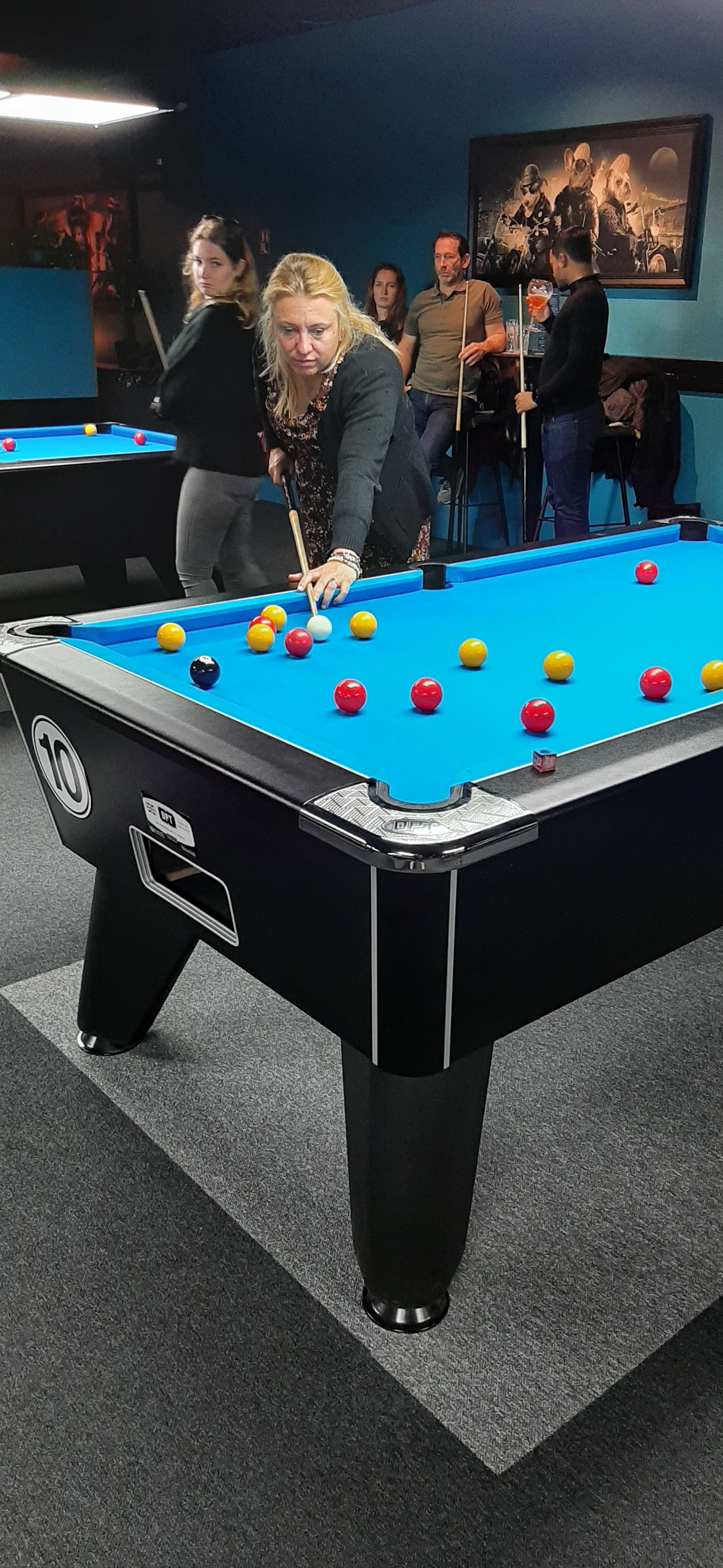 Bonjour Nous y sommes allés plusieurs fois toujours une bonne table et le billard c’est génial. Hier malheureuse ils étaient vraiment dans le jus, musique trop forte on avait du mal à s’entendre, beaucoup de monde dans l’établissement il faisait très chaud. Manque de coordination, 1 heure après notre arrivée nous avons reçu nos plats, alors que nos apéritif n’étaient pas encore servi. L’établissement est top, il y a vraiment de belles soirées en perspective avec de l’organisation.😊