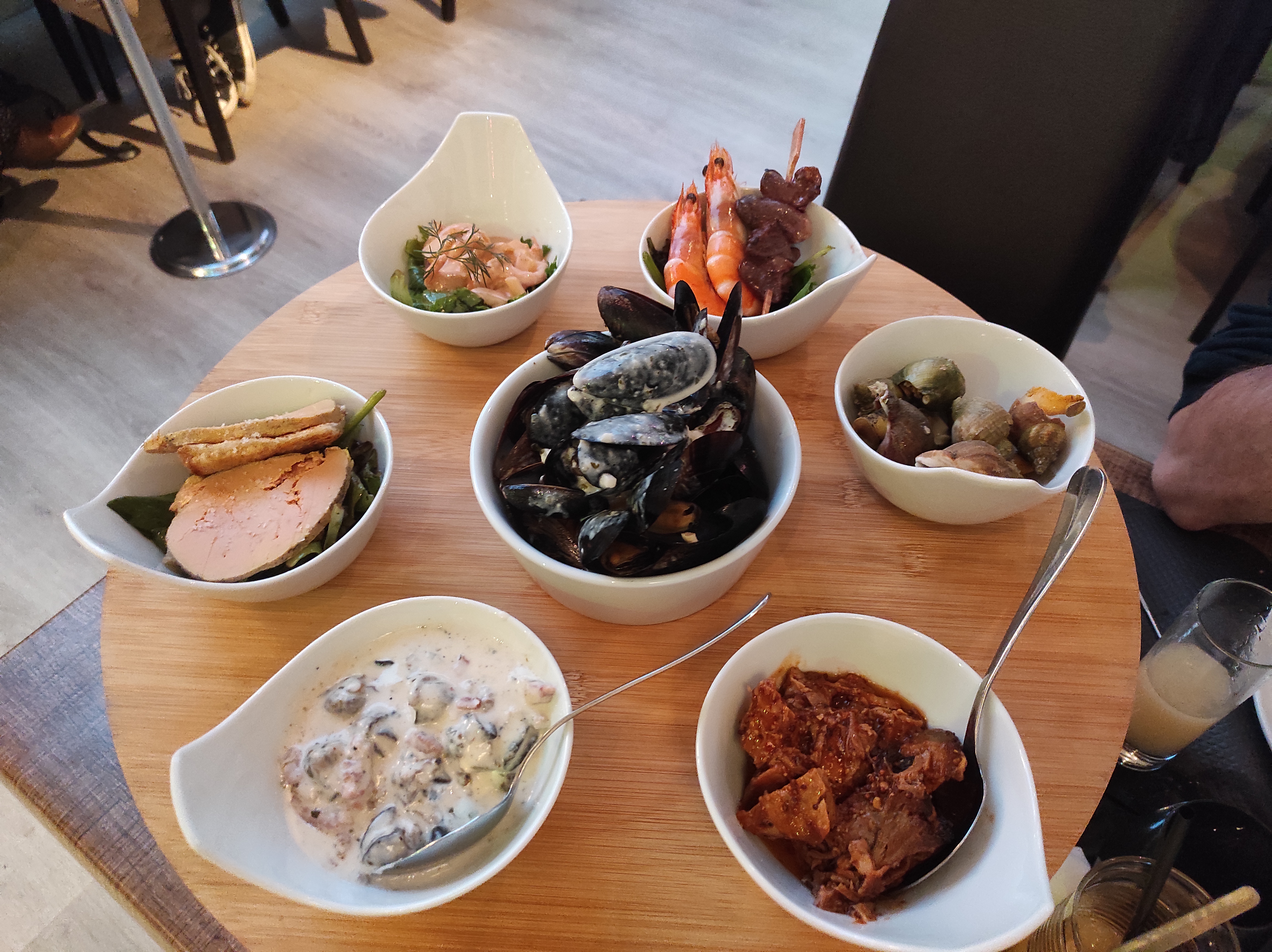 Bons plats mais service déplorable.... nous demandons une table en bord de mer de 4 personnes. Il y a seulement 2 tables occupées, on nous refuse la table et ensuite 2 personnes viennent manger et là on leur donne une table en bordure... Cherchez l'erreur... Nous avons été fort étonnés et très déçus. Ensuite la serveuse qui nous apporte l'apéritif avec le plat... Inconcevable... Quel établissement..... Vu notre insatisfaction, nous n'avons pas pris de dessert.