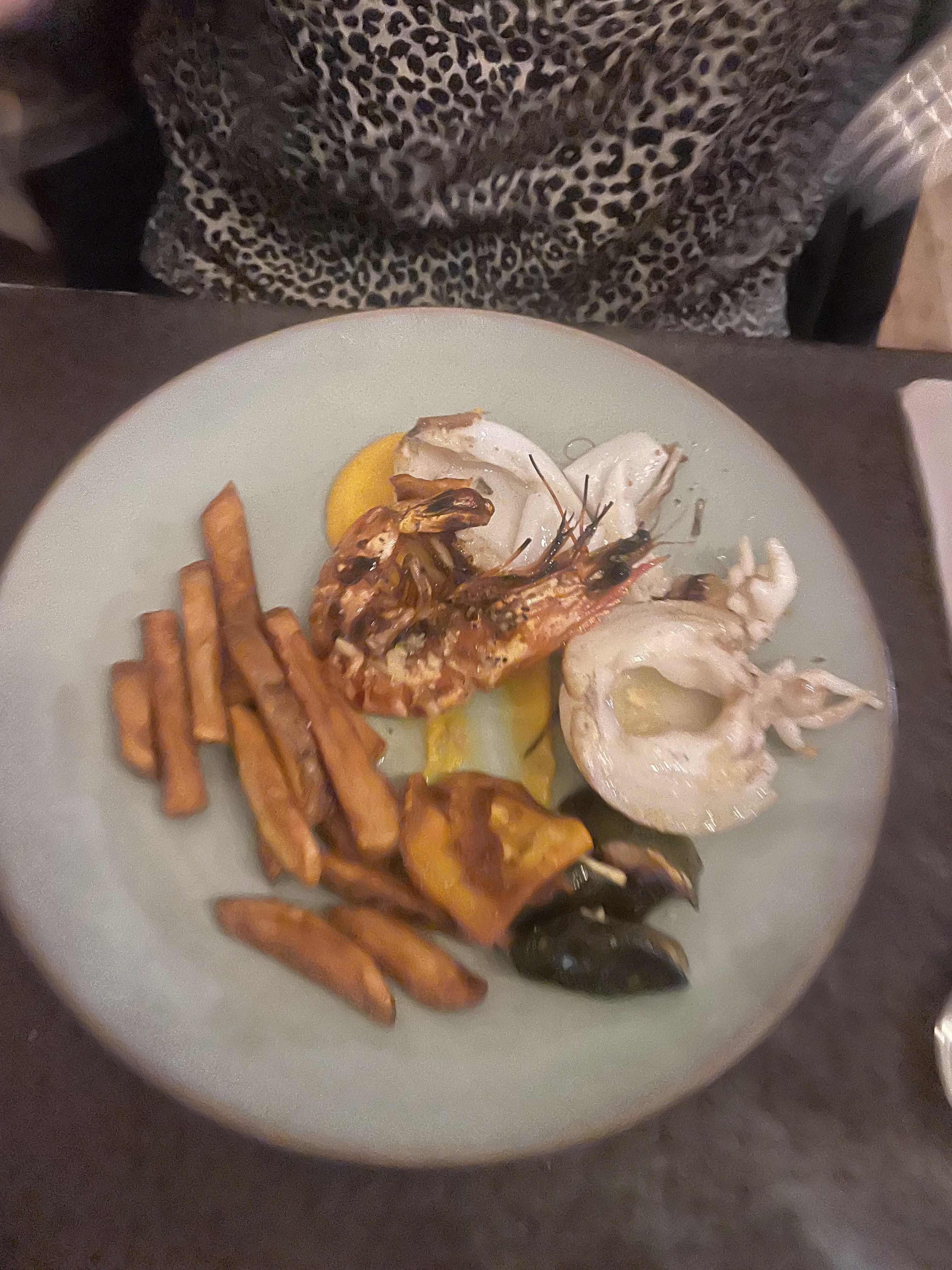 Nous avons passé un bon moment ! Pour ma part, j'ai choisi les gambas cuites au feu de bois.... un délice !!! J'y retournerai pour goûter l'agneau et franchement je recommande ce tout nouveau resto. Merci Ilies et Greg et bravo aux cheffes. Bonne continuation