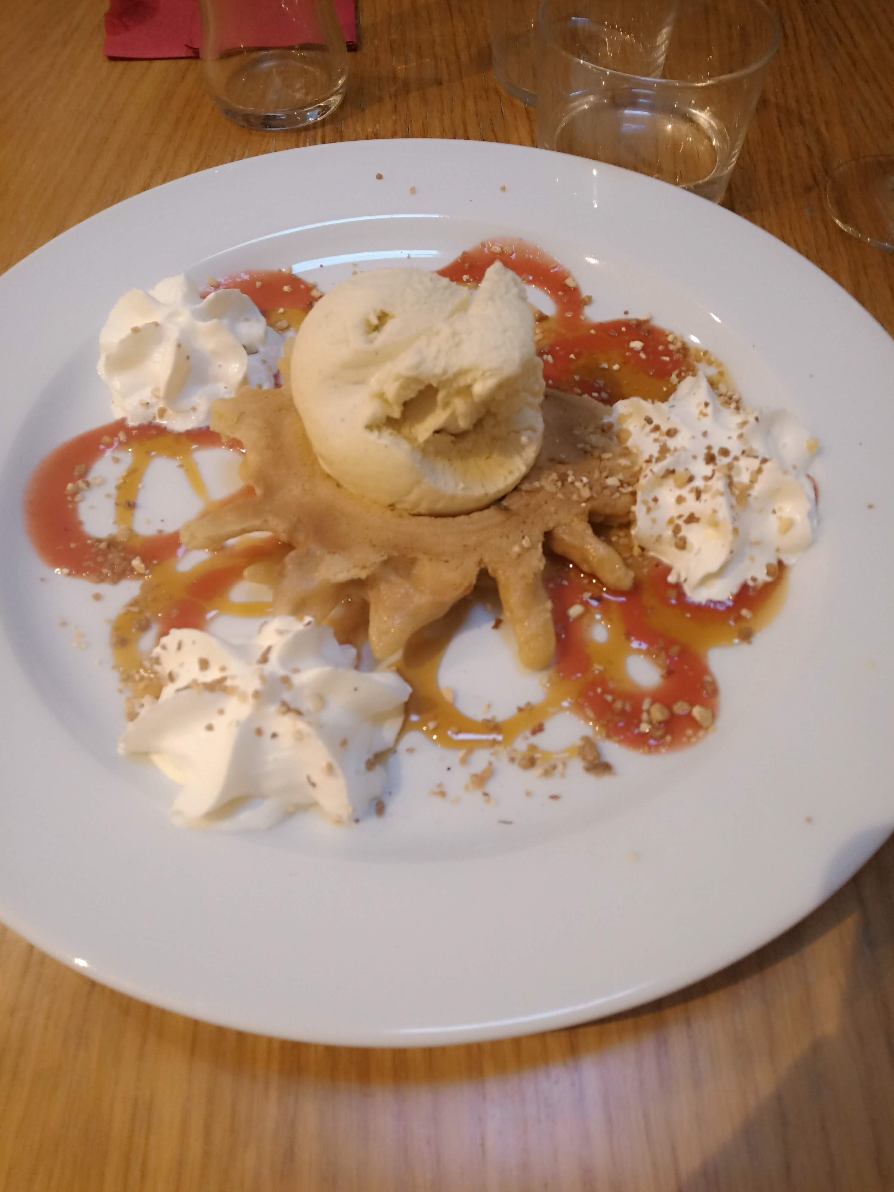 Bonne accueil très bon plat mais pour la raclette la part de formage un peu juste. Endroit très chaleureux Très copieux !