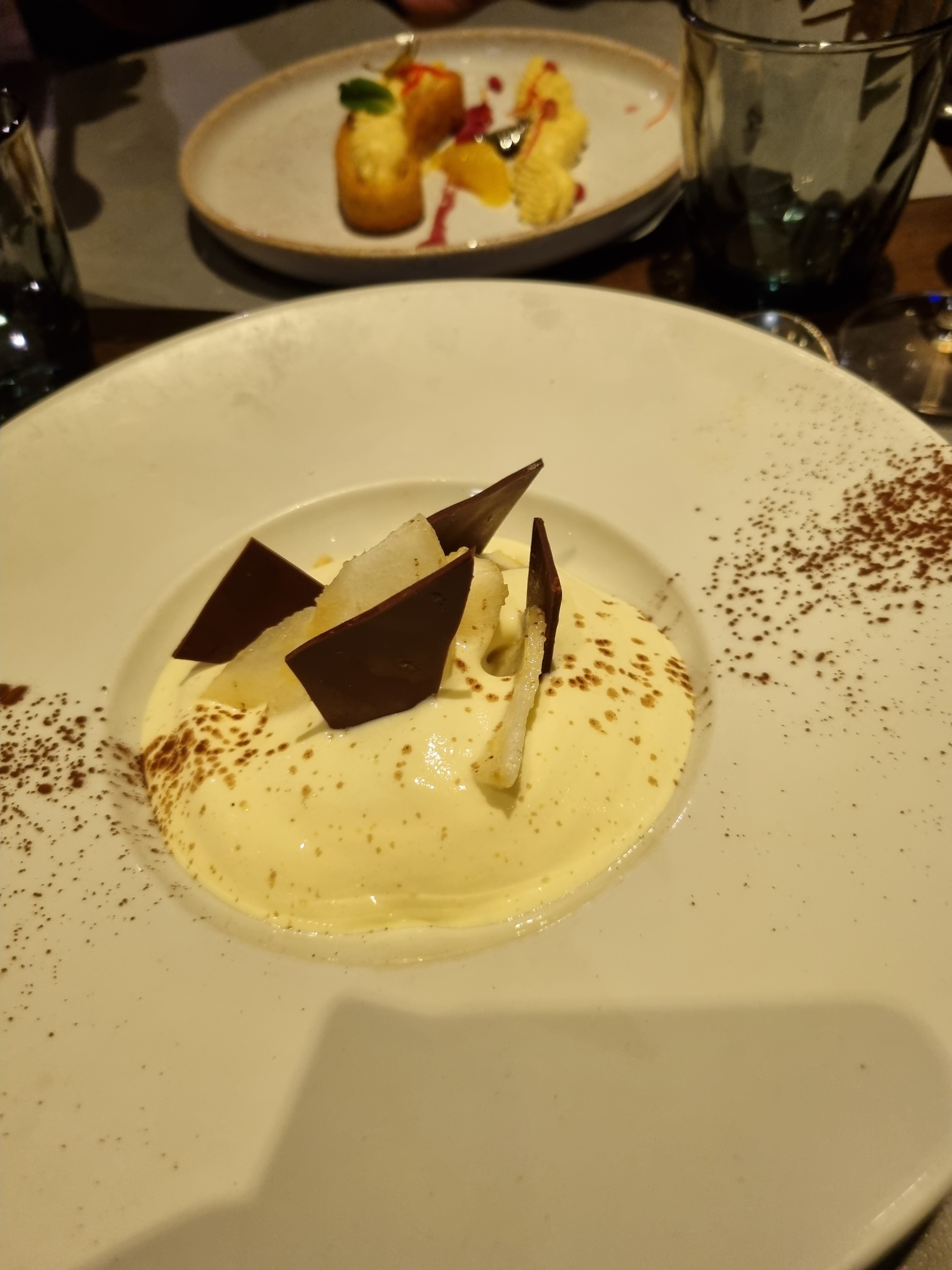 Plats cuisinés avec de bons produits. Très bonne sauce et excellente cuisson de la viande d'agneau malgré un peu trop de gras. Dessert un peu trop sucré et lourd, je m'attendais à plus léger pour une mousse soufflée et à un esthétisme dans la lignée du menu. Merci pour tout votre travail.