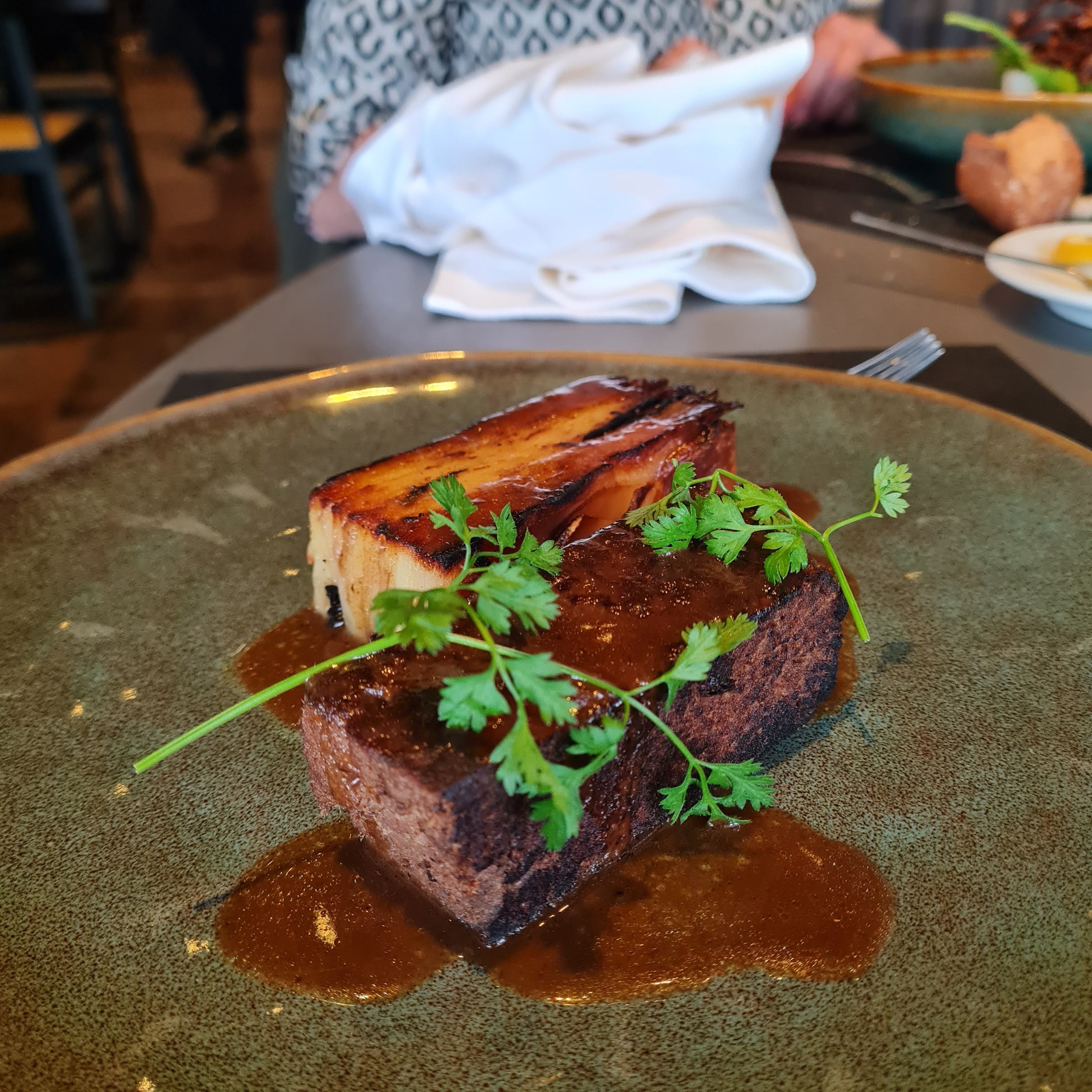 Malgré l'environnement,très surprise et un personnelle top et accueillant et connaissant bien la carte et leurs vins . N/nous avons véritablement apprécié le restaurant et le recommande sans problème