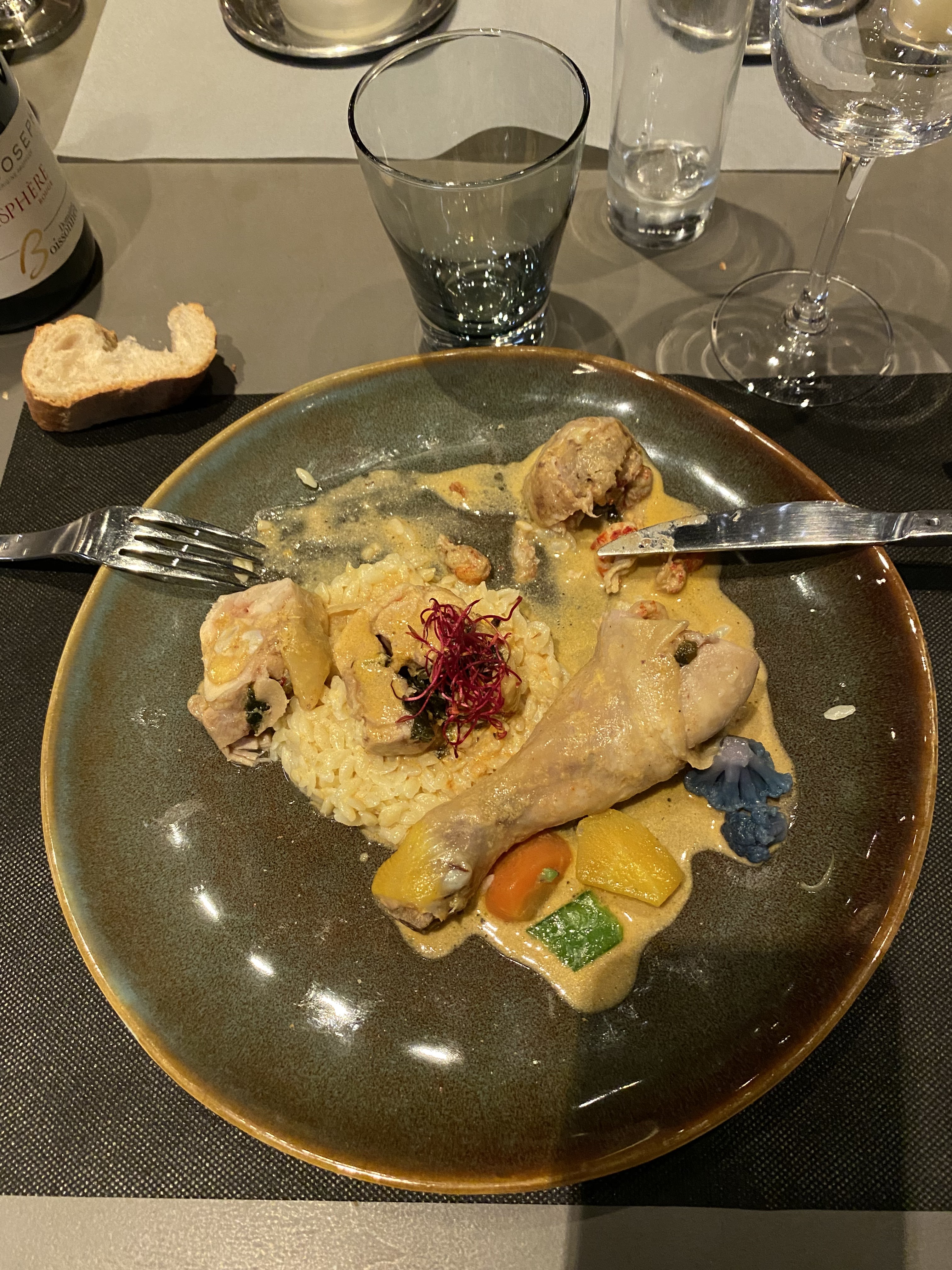 On en avait entendu parler en excellent terme et nous n'avons pas été déçus. Un petite pépite. Une cuisine classique affinée de quelques pointes d'originalité. Un mille feuilles de vieux comté et truffes succulent, un agneau de 7 heures d'une rare tendreté. Tout fut parfait du début à la fin. Nous reviendrons vite