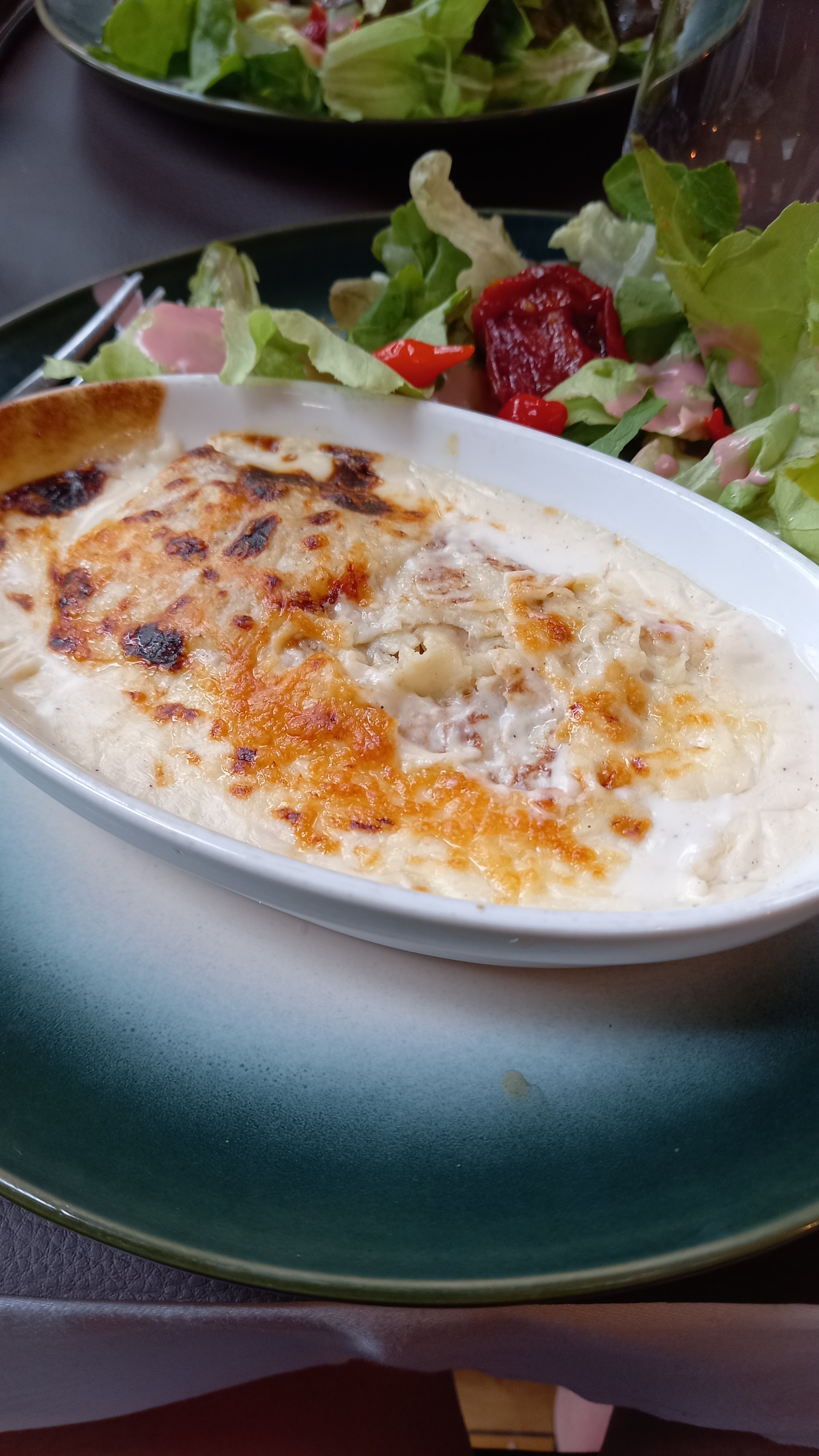 Globalement déçue. 17€ pour la galette est un peu cher selon moi, surtout quand le goût laisse à désirer. Les seuls goûts que j'ai senti c'étaient la farine de la galette et la sauce béchamel. Ambiance un peu bizarre. Les seuls (+) étaient la présentation du plat et la salade verte fraîche. Je n'y reviendrai pas.