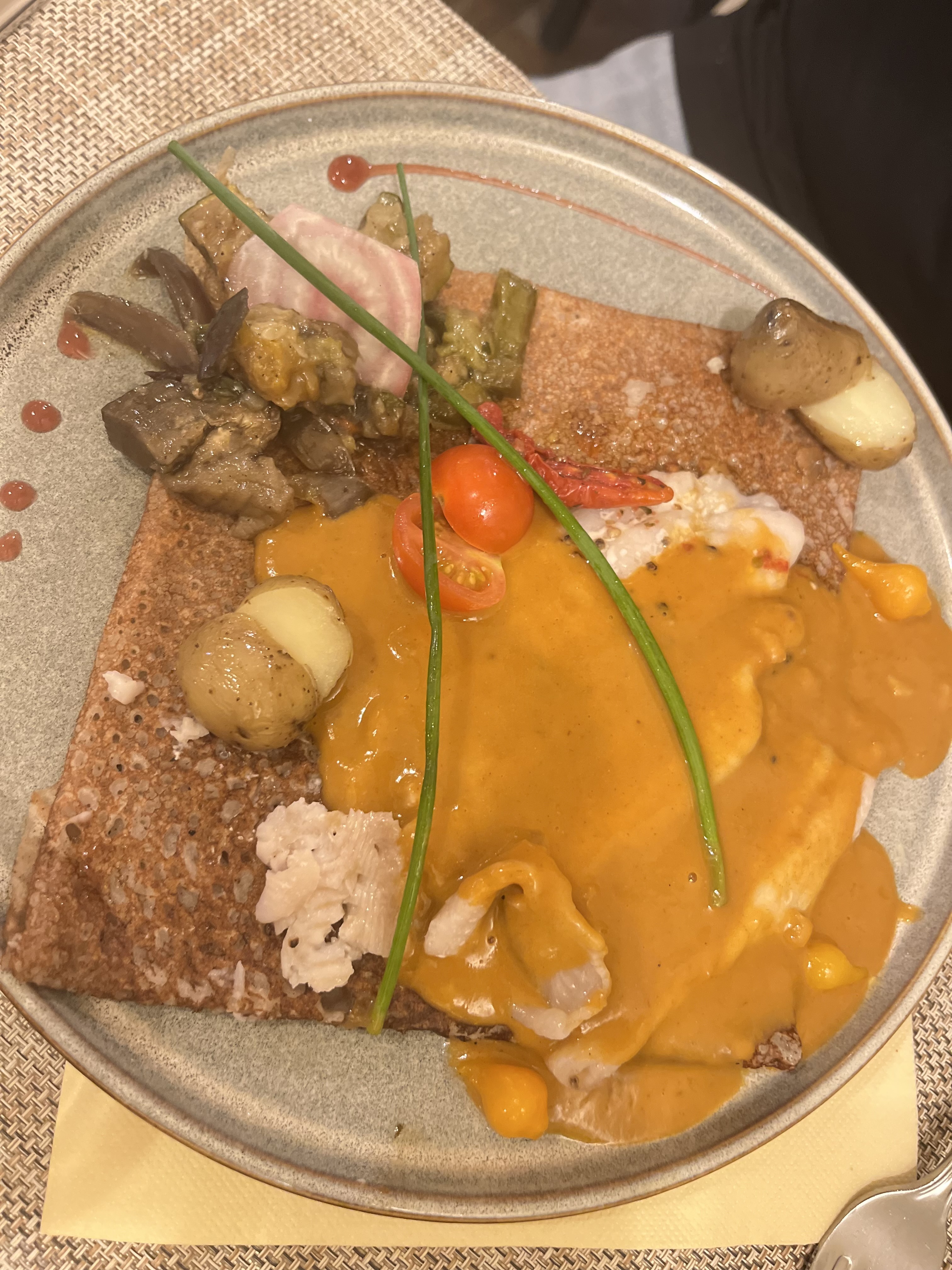 Il ne faut pas s’attendre à une crêpe garnie d’ingrédients diverses. C’est plus travaillé. Et c’est très bon!!! Le service est un peu brouillon et il y a beaucoup de bruit à cause de la cuisine mais le chef est actif et agréable. Nous nous somme régalé.