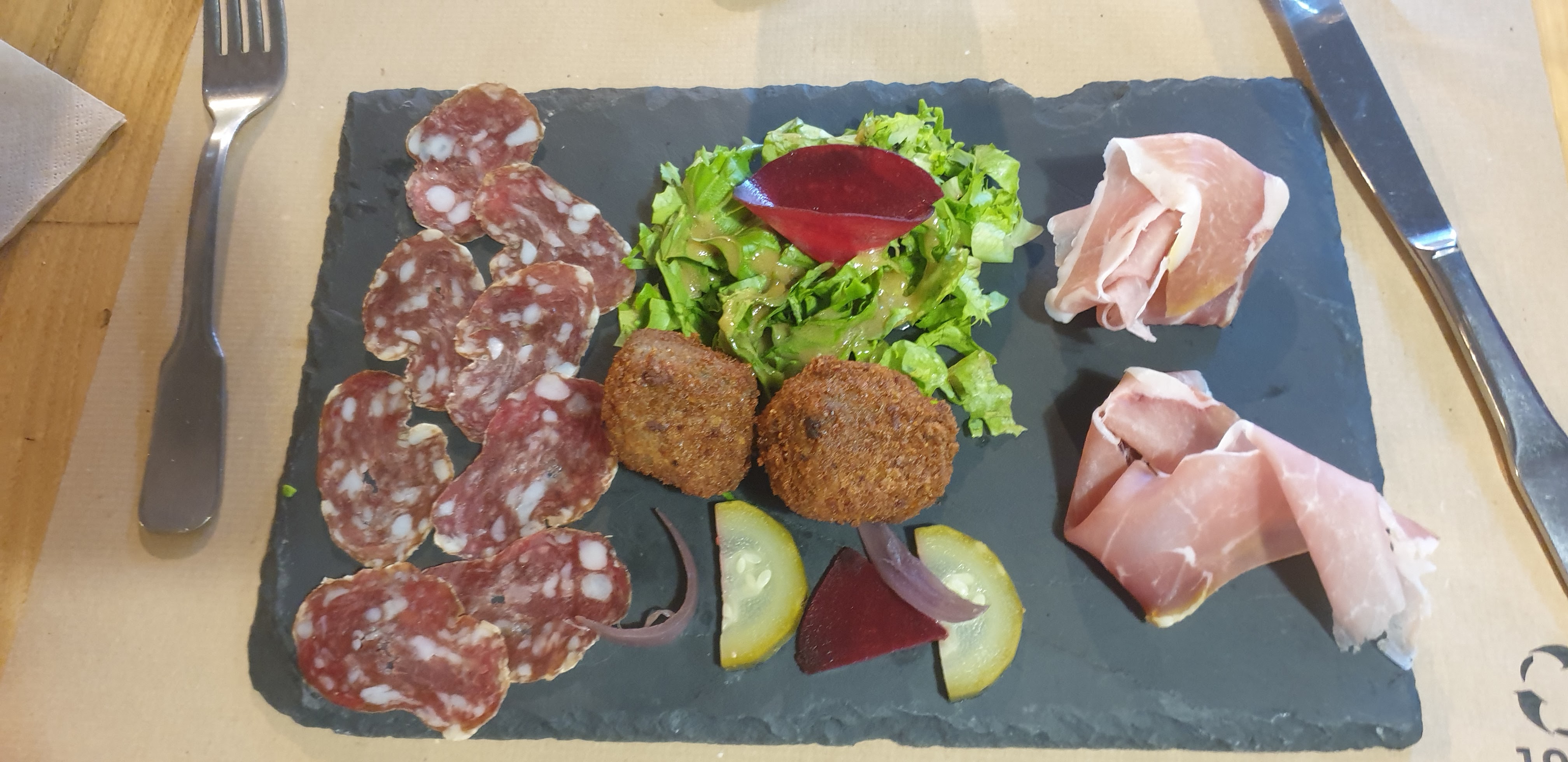 Succulent repas avec des produits frais très bien présentés Super ambiance simple et chaleureuse