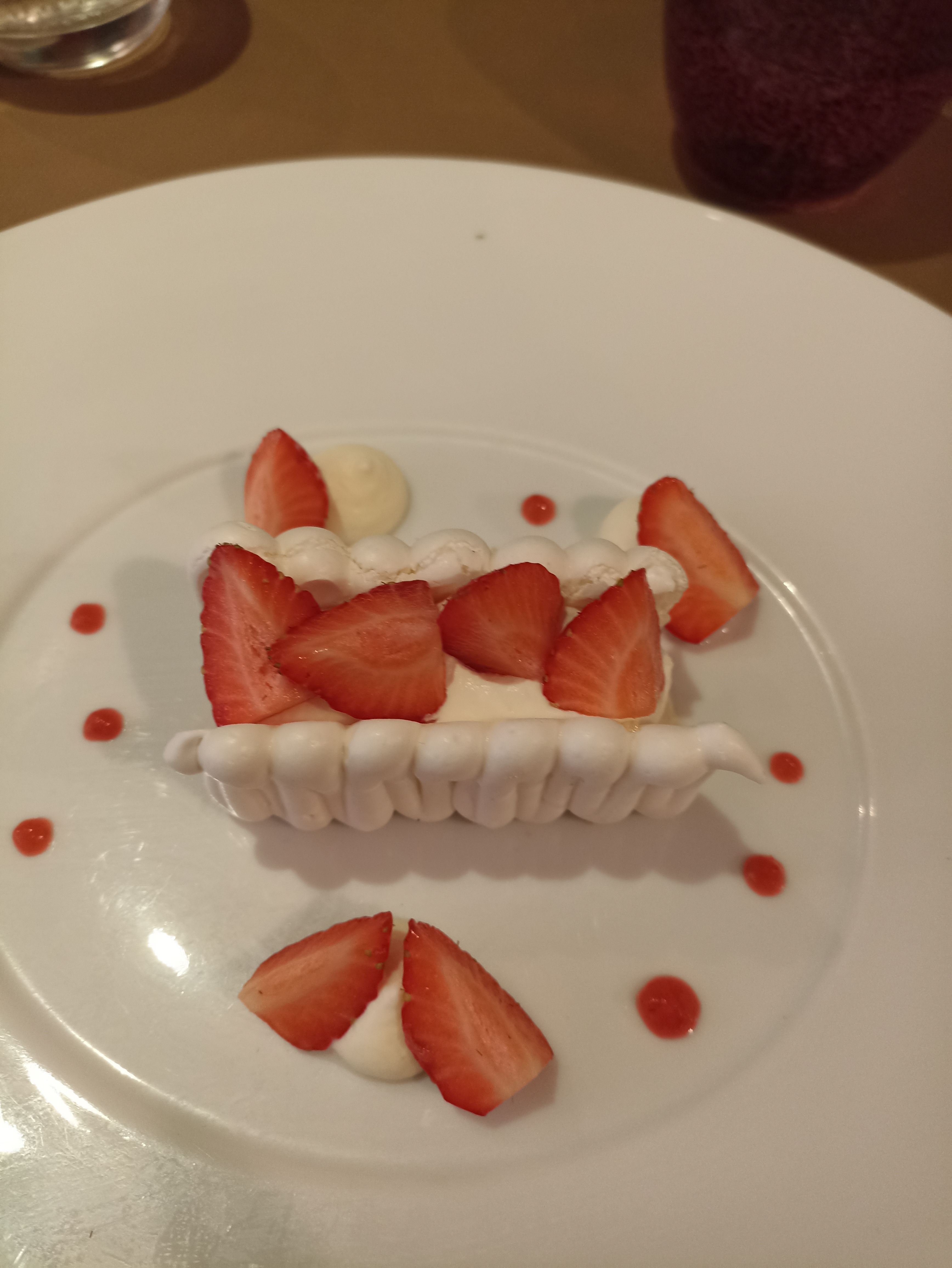 Restaurant gastronomique à recommander ,plats principaux excellent très fin ,mais par contre gros bémol pour le dessert une Charlotte au fraise inexistante à peine une bouchée avec 4 fraises qui battent en duel surtout pour le prix de 14 euros je reste sur ma faim en plus c'était très bon ...