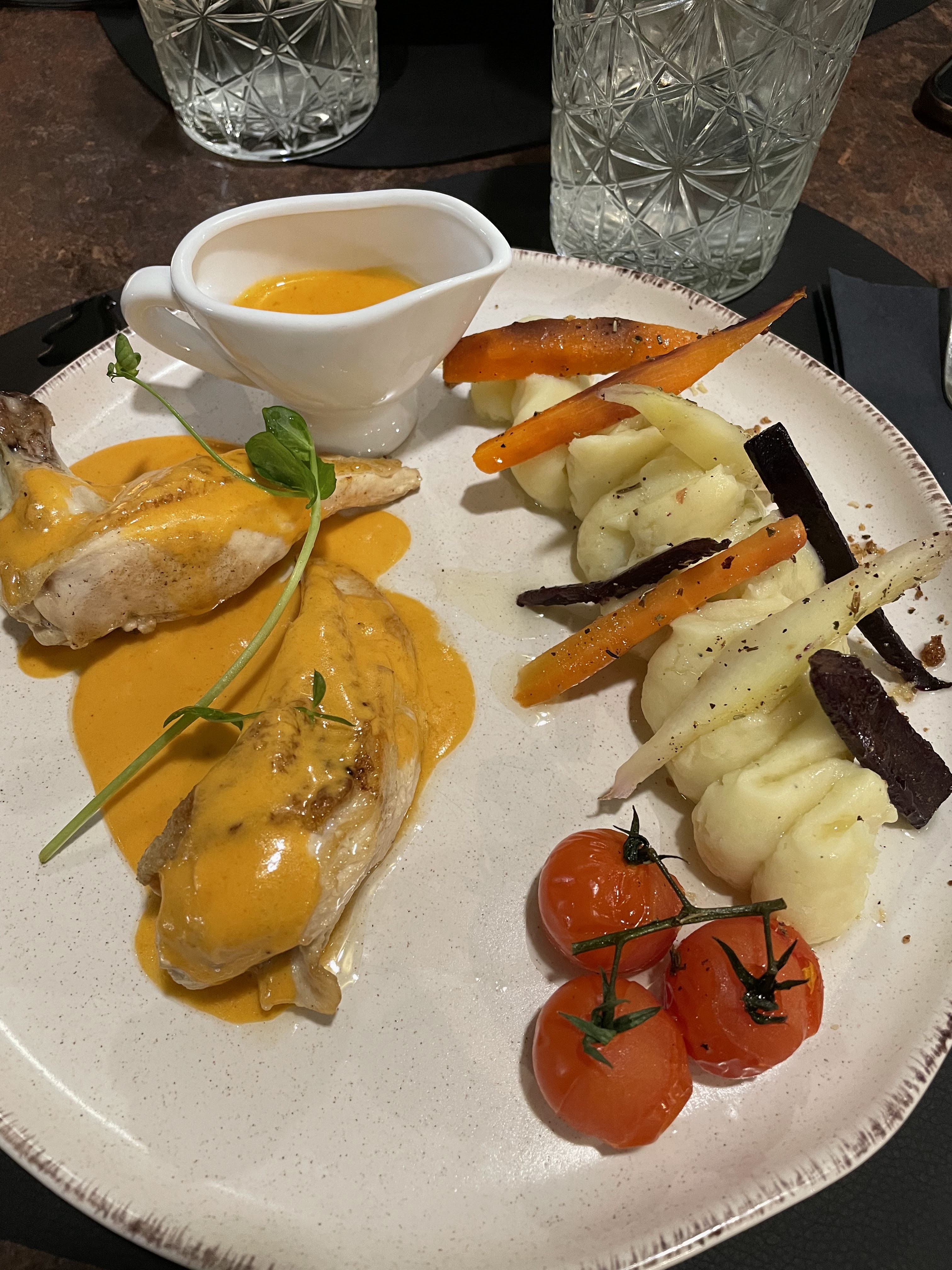 Belles présentations et plats de qualité mais le pain vient de nulle part.... Dommage Et le tout sans alcool.... Pourquoi pas mais certains plats pourraient être sublimes avec un petit verre, pas besoin d'une grande carte des vins..... Mais dans une ville de la gastronomie avec du Schweppes, ou du sirop.... pour accompagner.... pas idéal....