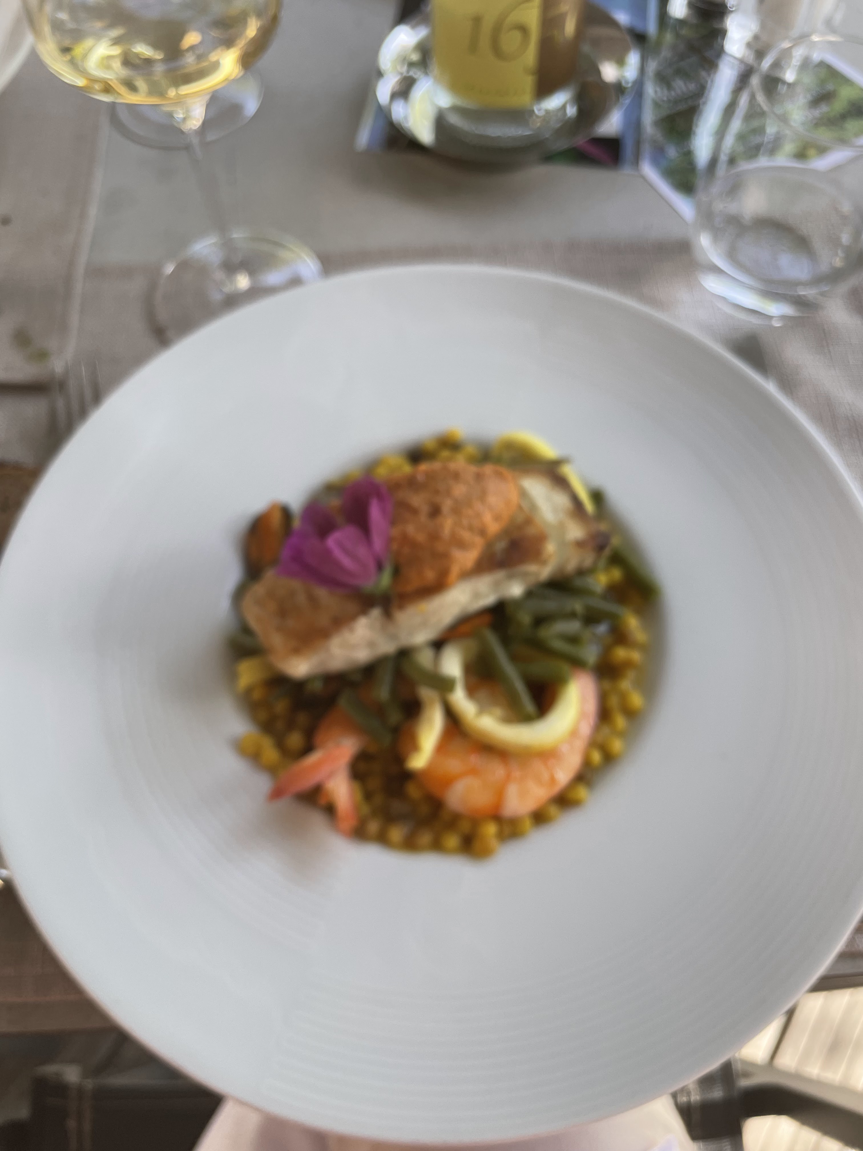 Avons dîné sur la terrasse. Très beau décor. Très bon, le foie gras un peu gras à mon goût. Restaurant gastronomique, donc forcément un peu cher. ...mais ça vaut le coup. Merci au personnel, au top.