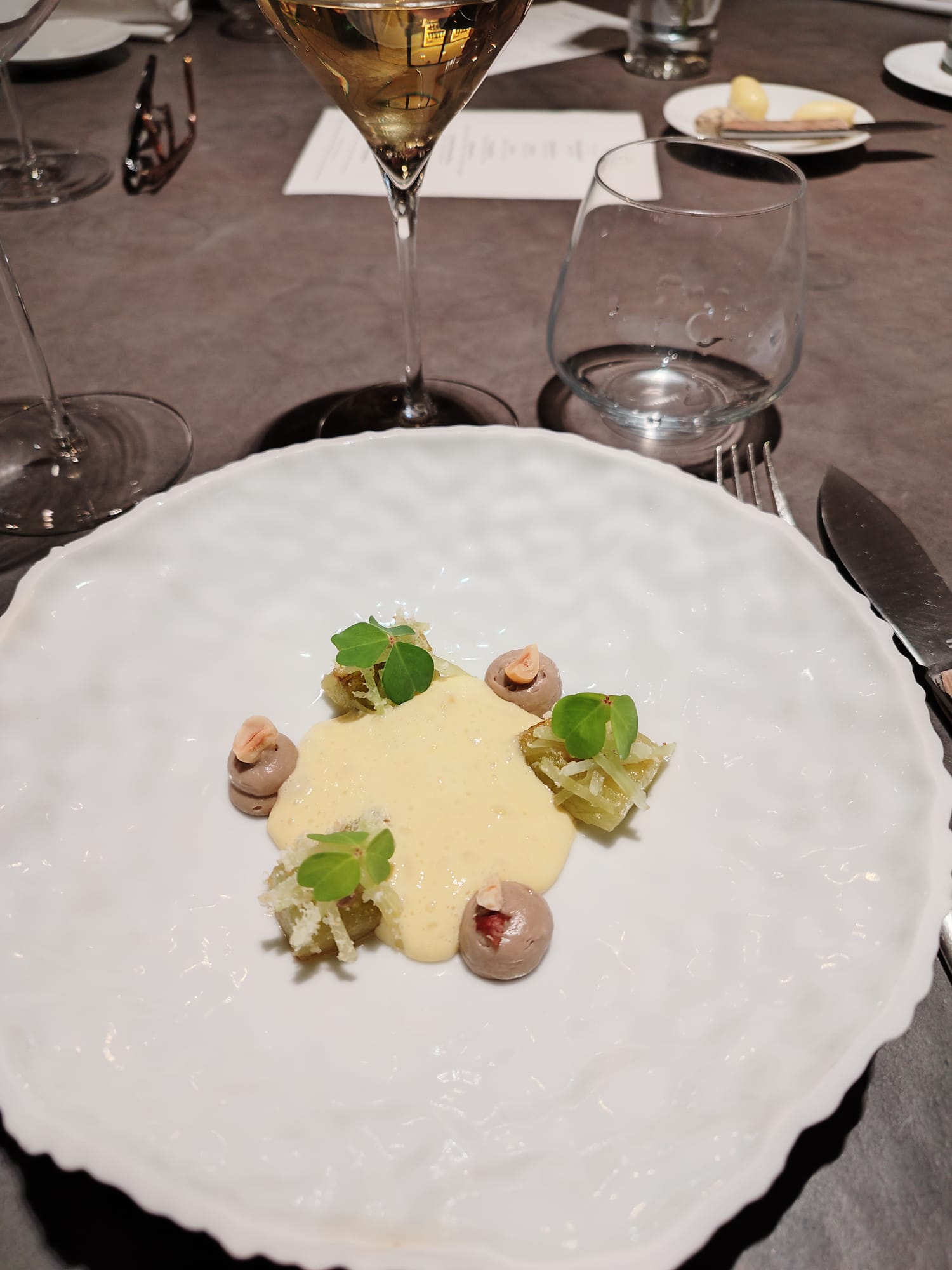 Parfait du début à la fin. Une très belle soirée en 8 services, bravo. Nous aurions apprécié échanger avec le chef en fin de service.
