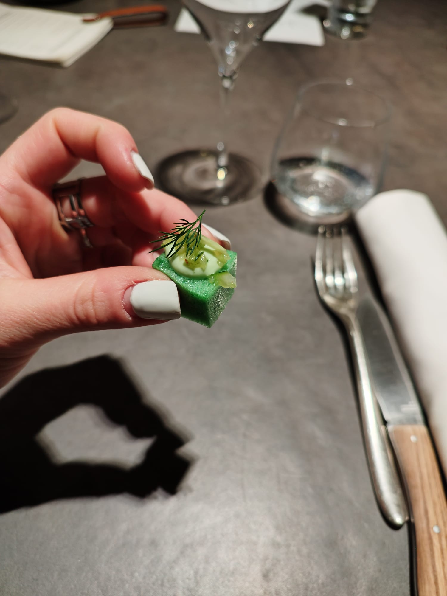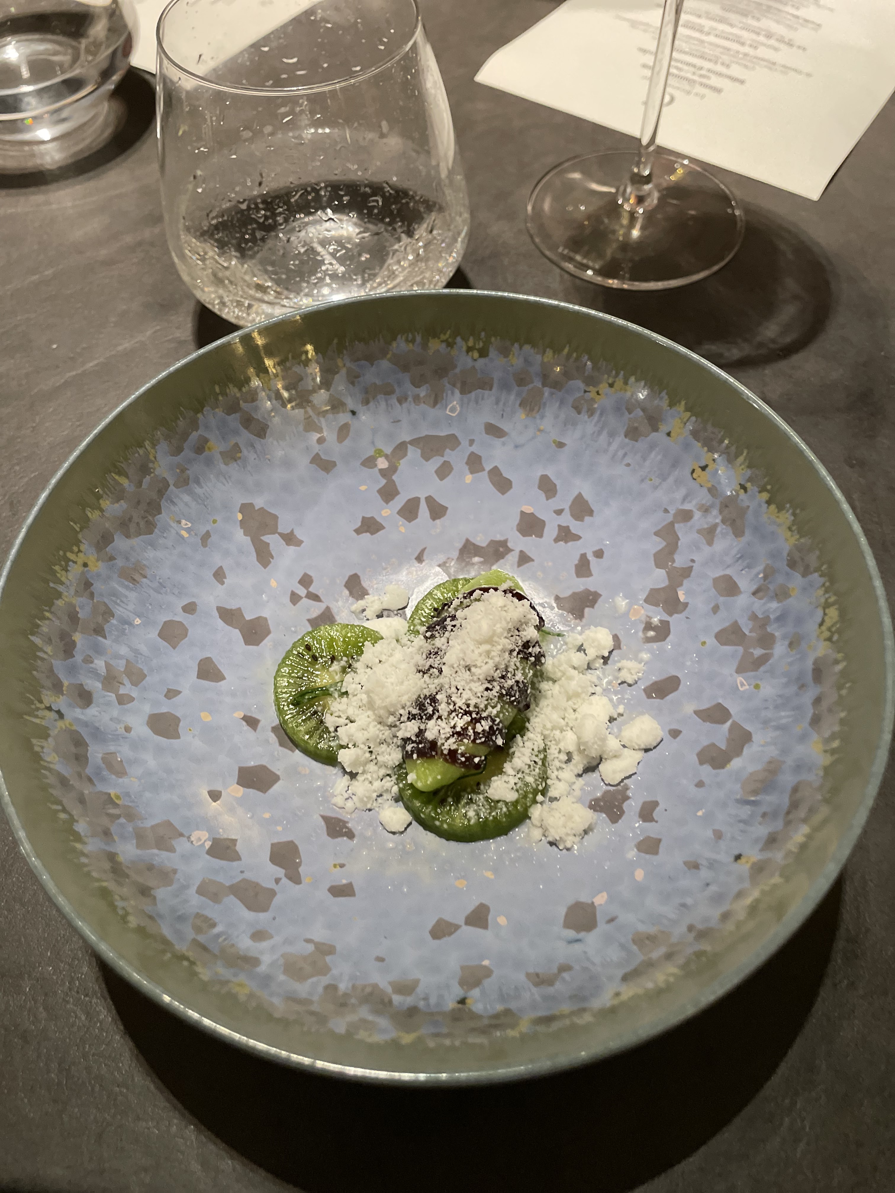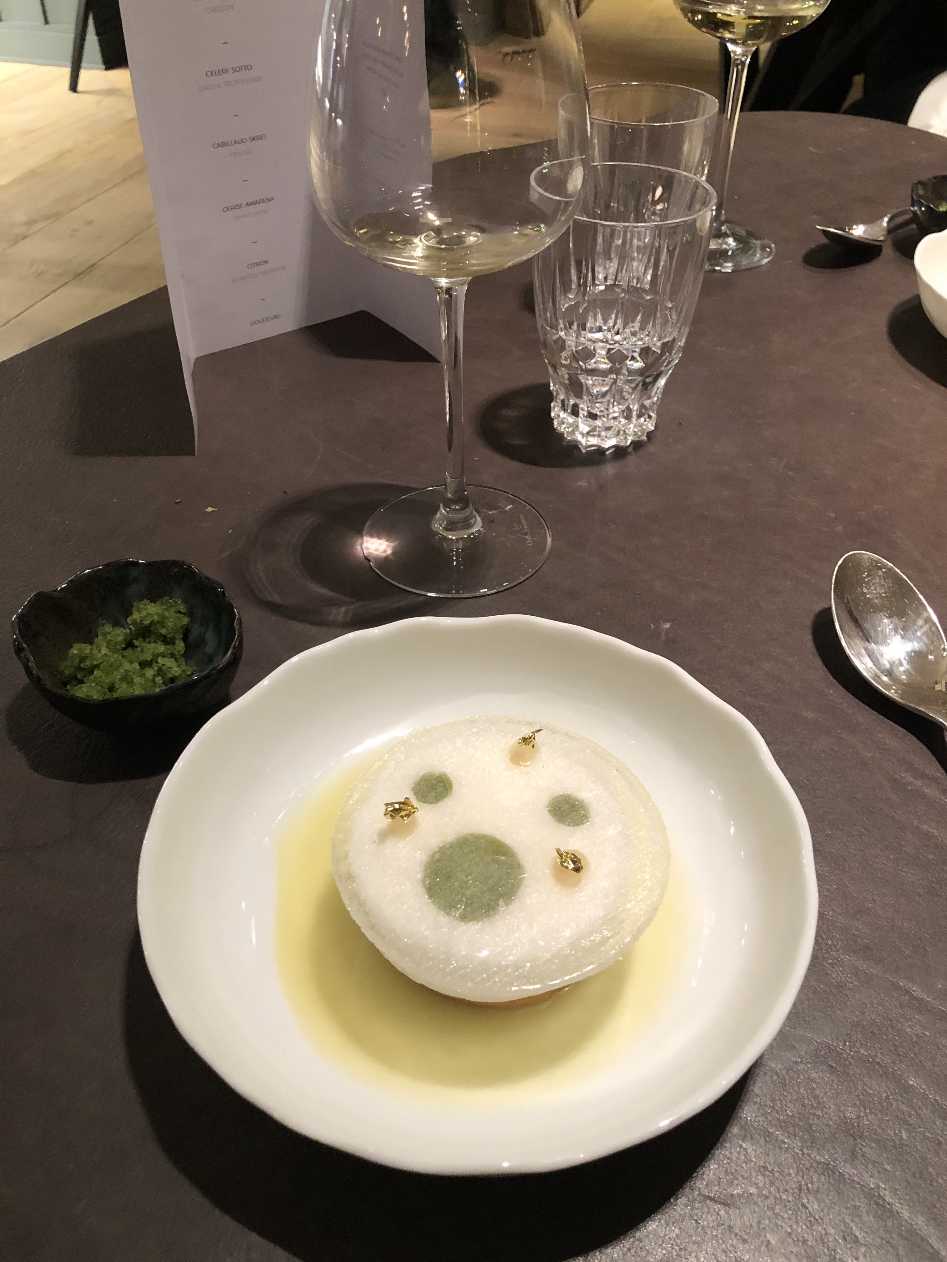 J'ai adoré,excellent,très original,une vue sur la cuisine exceptionnelle, tout le monde très sympa,je me sentie très á l'aise. Un caviar divin,et mon coup de cœur le kiwi jaune avec son sorbet persil avec de la poudre de roquefort,j'en rêve encore.un pâtissier innovant.en bref je vous le conseille vivement