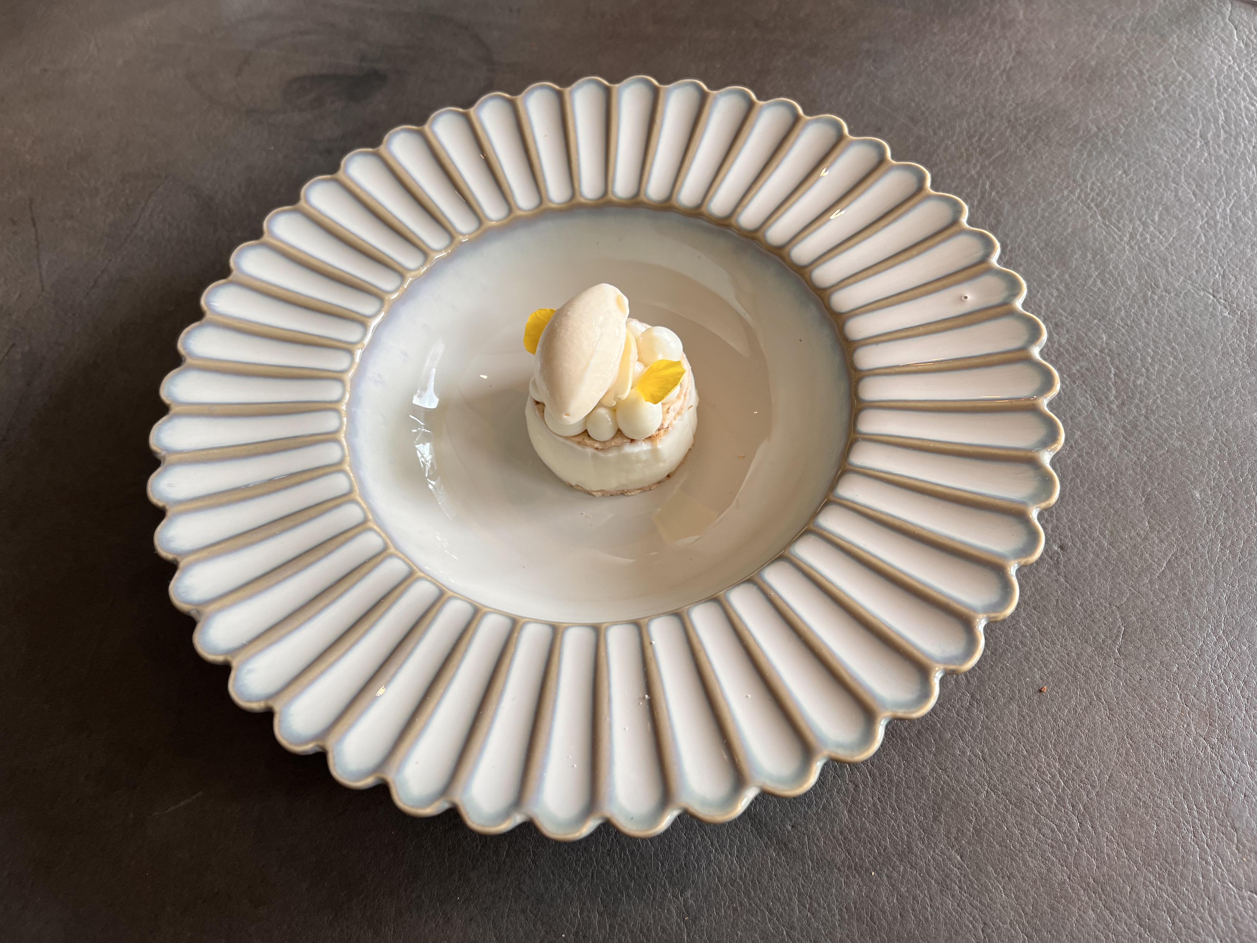 belle découverte de ce midi. accueil et service attentif tout en restant discret, plats raffinés, désert original: omelette norvégienne aux asperges vu sur les cuisines et sur le vieux Lille le macaron Michelin est mérité petit bémol sur le cout des boissons. félicitation au chef et à toute son équipe nous reviendrons et conseillerons ce restaurant bonne continuation