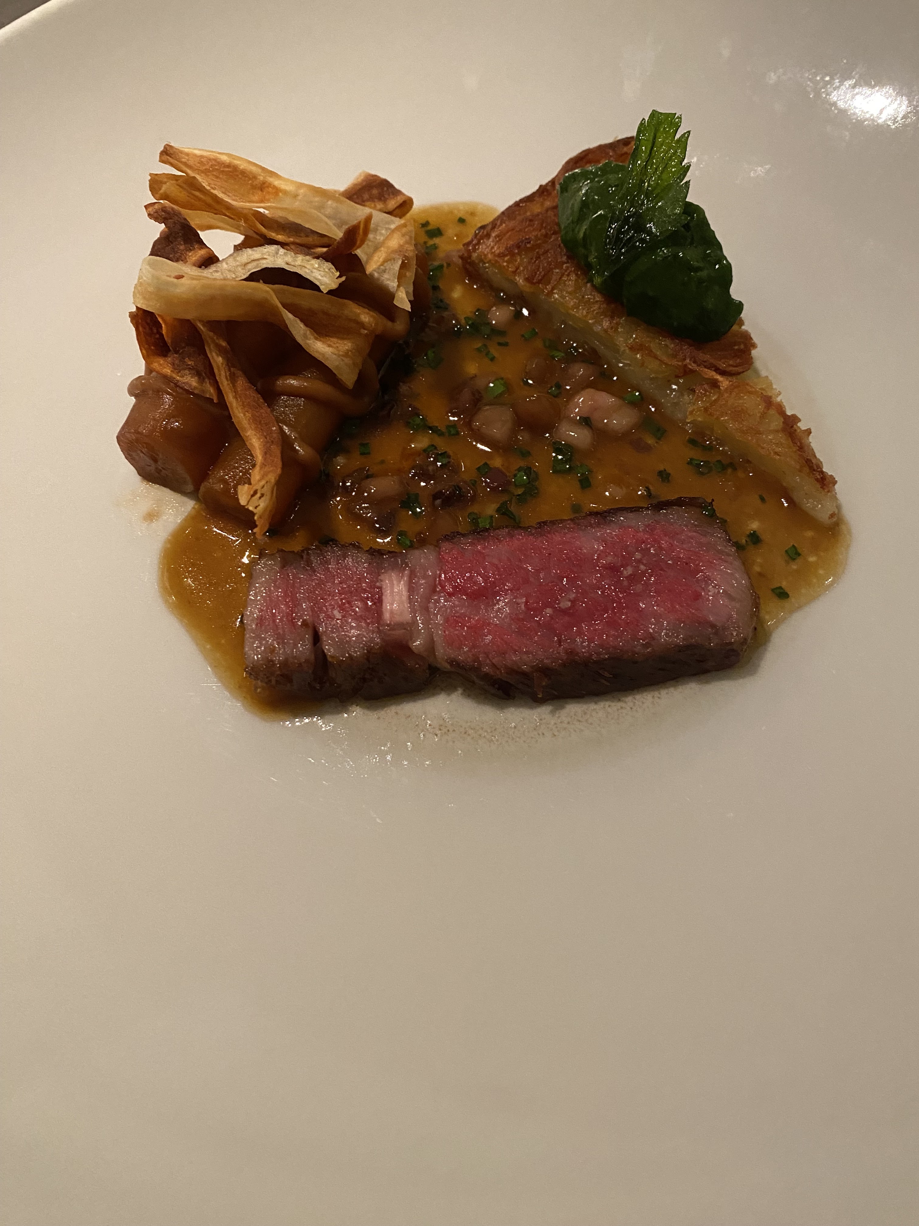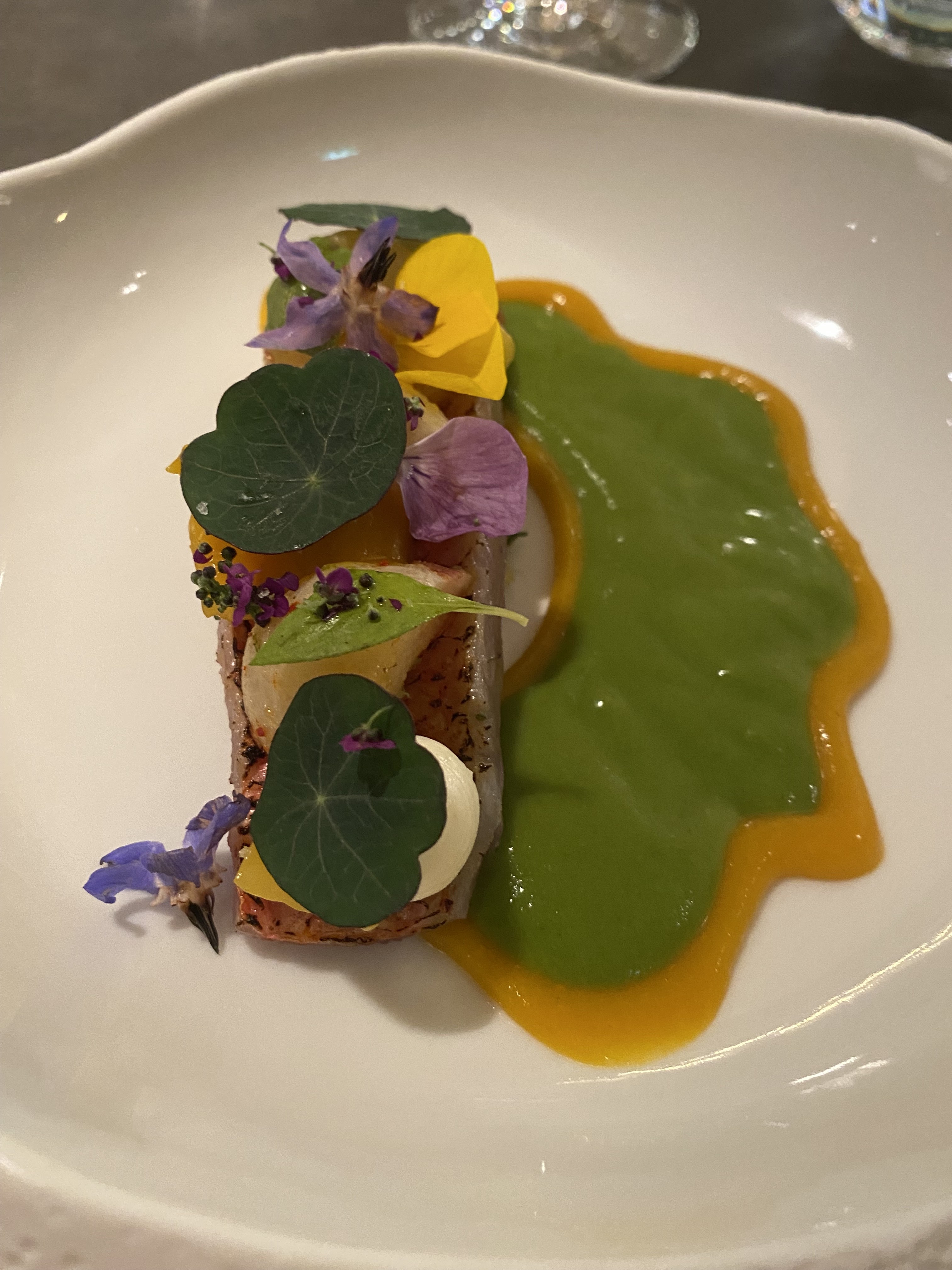 Le menu est toujours sublime, un mélange de saveurs et d'une belle inventivité . Le rouget accompagné de navets, mangue et curry est un délice. Quant aux noix de St Jacques /pied de cochon, une aventure culinaire. Il ne faut pas oublier le délicieux boeuf Wagyu et son accompagnement. Avec bien sûr un personnel qui sait ce faire discret et présent à la fois