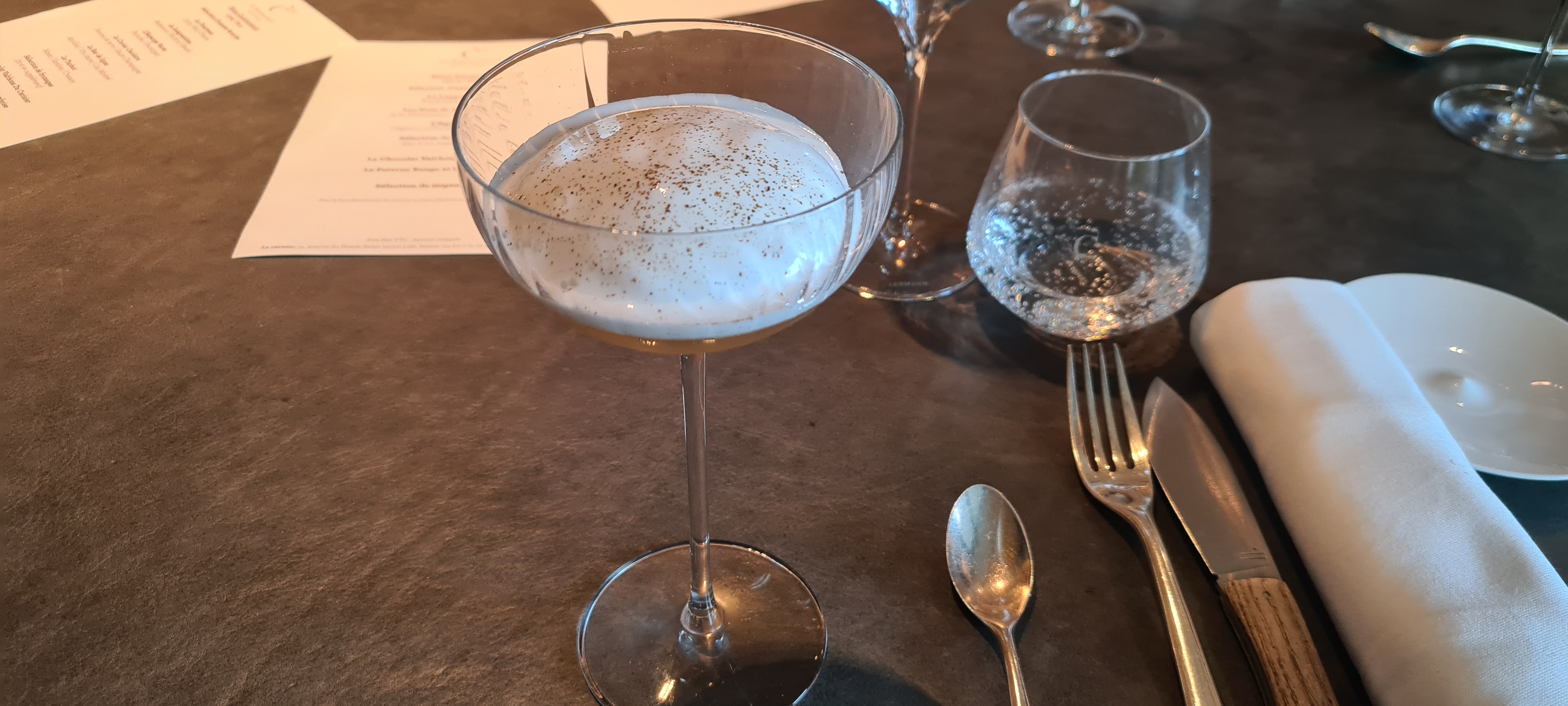 Des goûts, des parfums les plus surprenants pour un voyage en toute quiétude en bord de mer (menu quintessence) L’accueil tout au long du repas est chaleureux avec une note particulière au sommelier