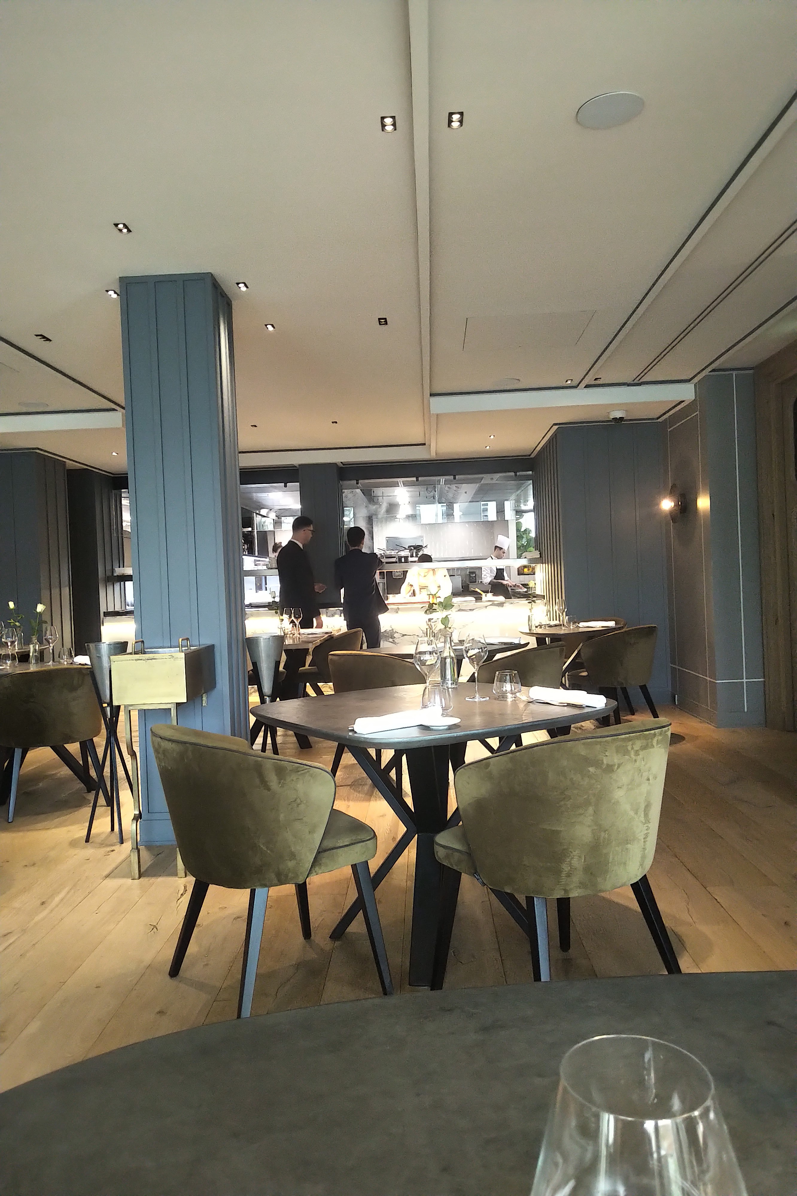 Première impression en arrivant , le bâtiment avec une belle architecture que ça soit à l’extérieur et à l’intérieur. Ensuite , vous êtes accueilli par le personnel. Celui-ci nous accompagne jusqu’au vestiaire du restaurant et prend nos manteaux. Ensuite un serveur , nous accompagne à notre table qui était face à la cuisine où nous pouvions observer la réalisation des plats.Nous avons pris le menu découverte avec les accords, c’était très bon des amuses bouches aux mignardises. Pour terminer le service était impeccable. Nous reviendrons avec plaisir.