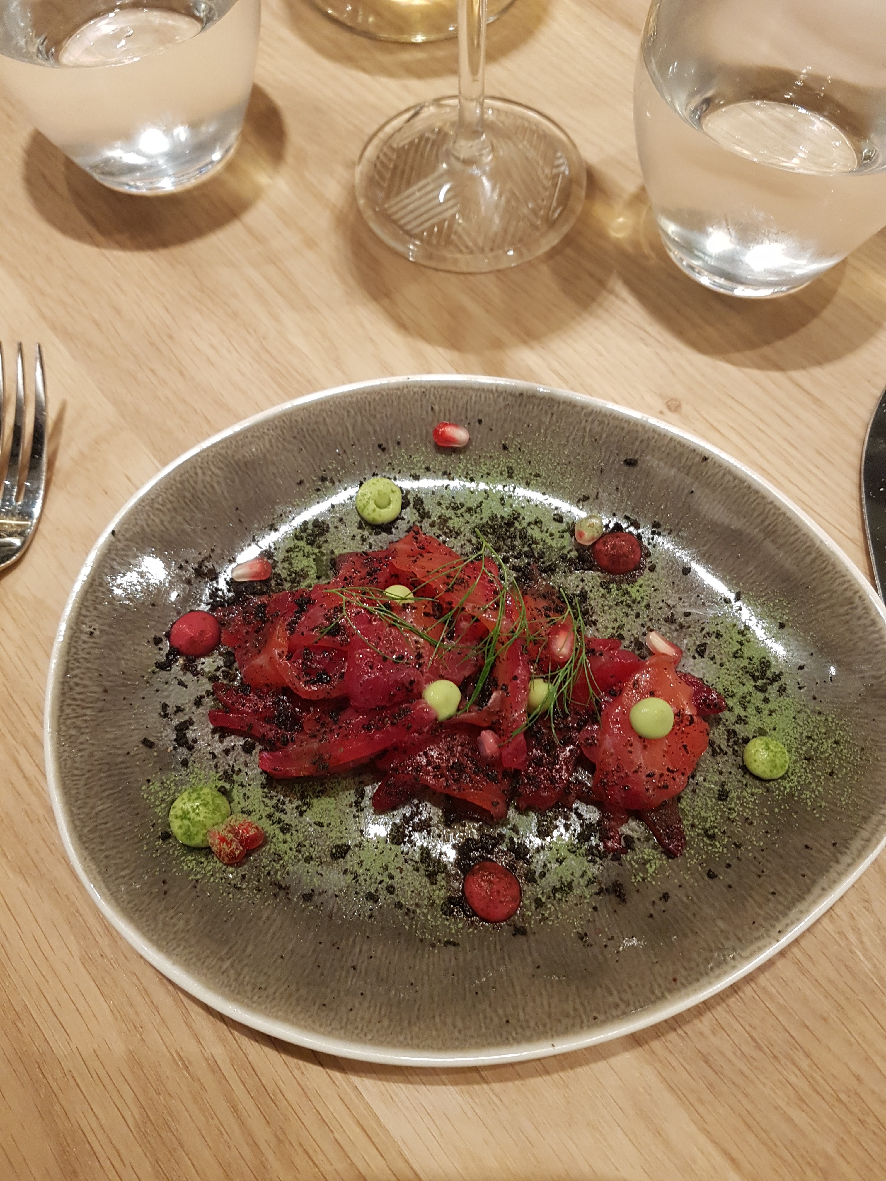 Un repas digne d'un gastronomique et une ambiance très agréable tant le lieu est beau et épuré. C'est agréable aussi de voir les cuisines. C'est surprenant aussi de voir le service en action et quasiment pas de bruit. Côté cuisine les amusés bouches font leur effets avec des mélanges audacieux et très subtiles (mélange terre et mer qui marche super bien avec haddock/betterave et hareng/réglisse) L'agneau a été décliné parfaitement et mention spéciale pour le dessert ultra fin et frais vanille/asperge. Service pro et serein,c'est plaisant. A recommander