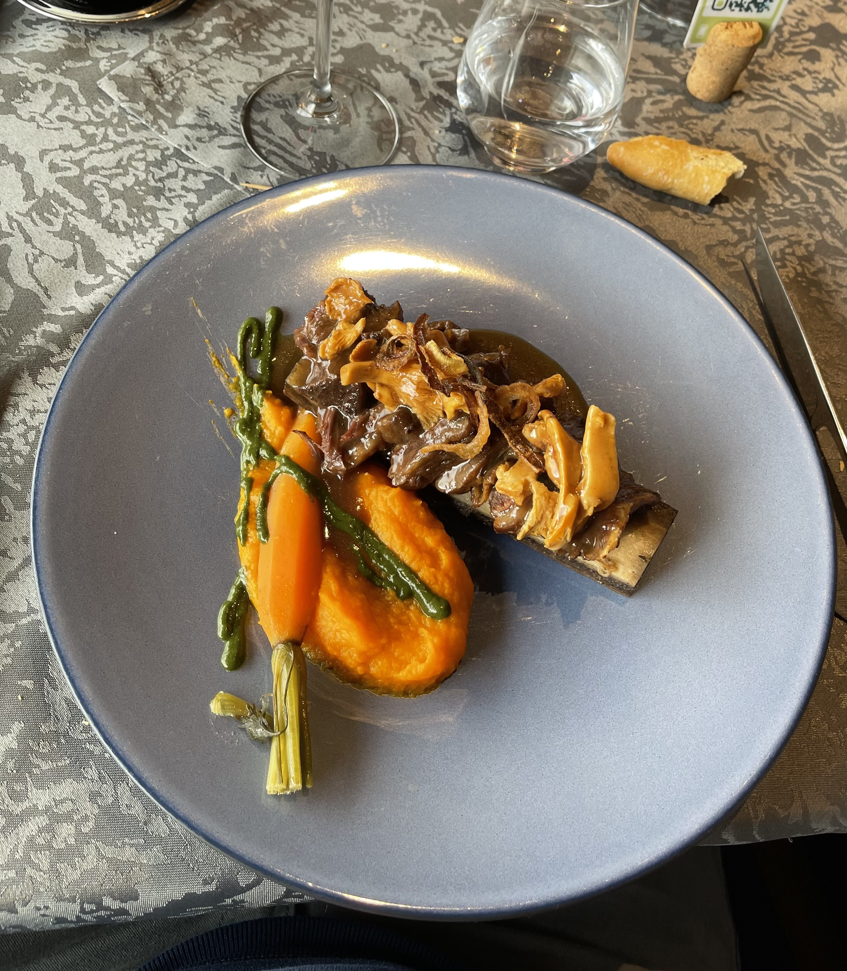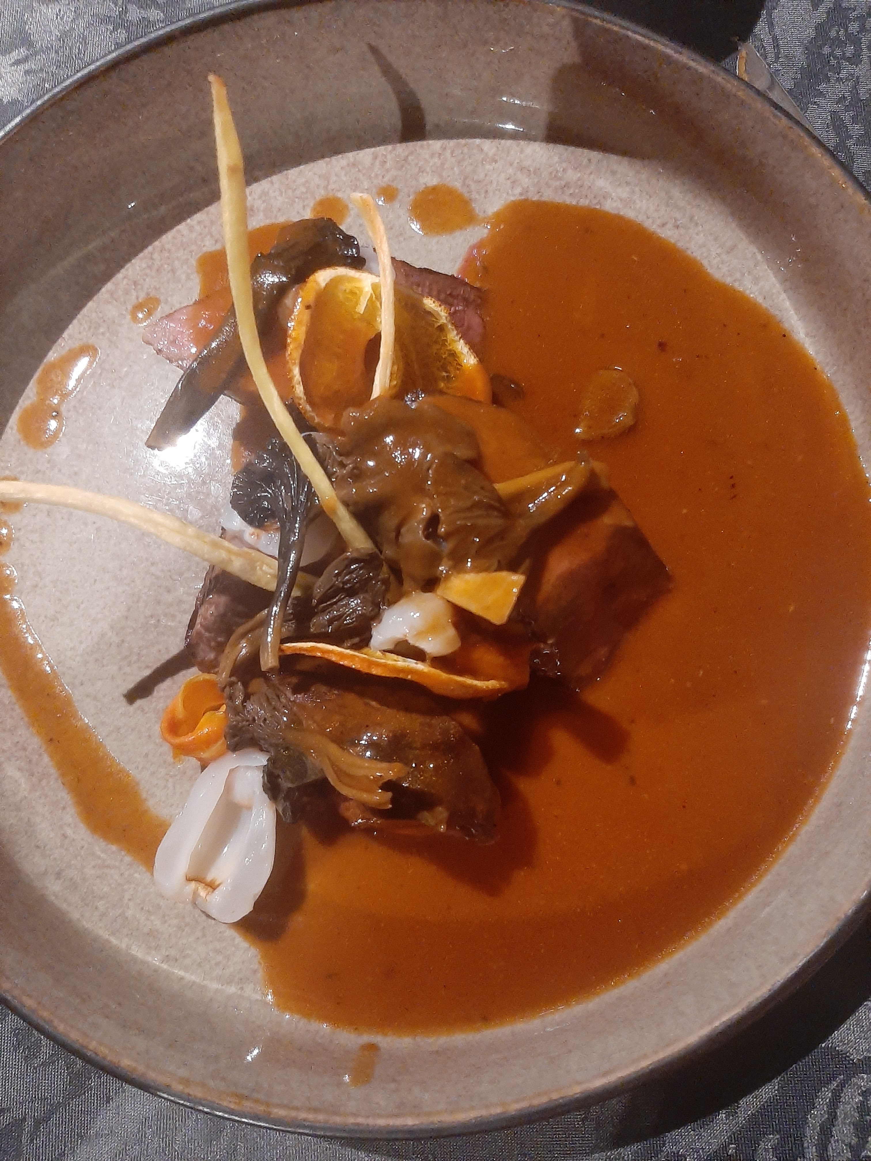 Le cadre est magnifique, avec une belle fusion entre le bois, le métal et la pierre. Le service est très rapide et la serveuse fort sympathique. Le tarif des vins est un tantinet élevé. Le chariot (ou plutôt l'établi) de fromages est impressionnant. Une petite déception sur le désert ; la quenelle de ganache sur riz soufflé, trop basique, mériterait d'être plus travaillée, afin de conclure en beauté, ce voyage gustatif.