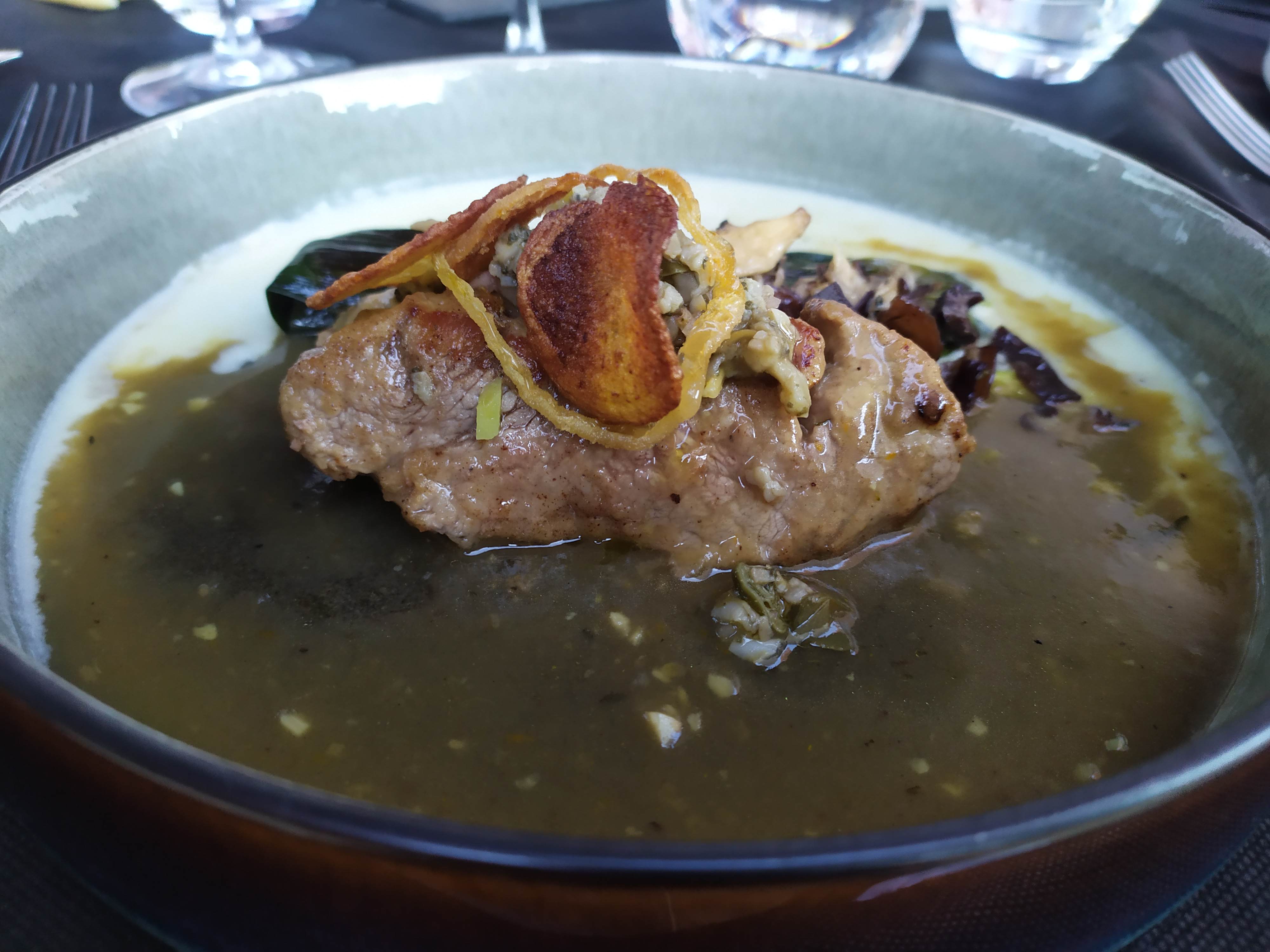 Très bonne soirée. Cadre magnifique. Des plats succulents. Le repas est sublimé par la performance scénique du « sommelier - maître affineur » qui est intarissable sur le patrimoine gastronomique de la région et même au delà des frontières. Tout ça sous l’œil protecteur et bienveillant de la mascotte de maison; Le chien! A découvrir les yeux fermés.