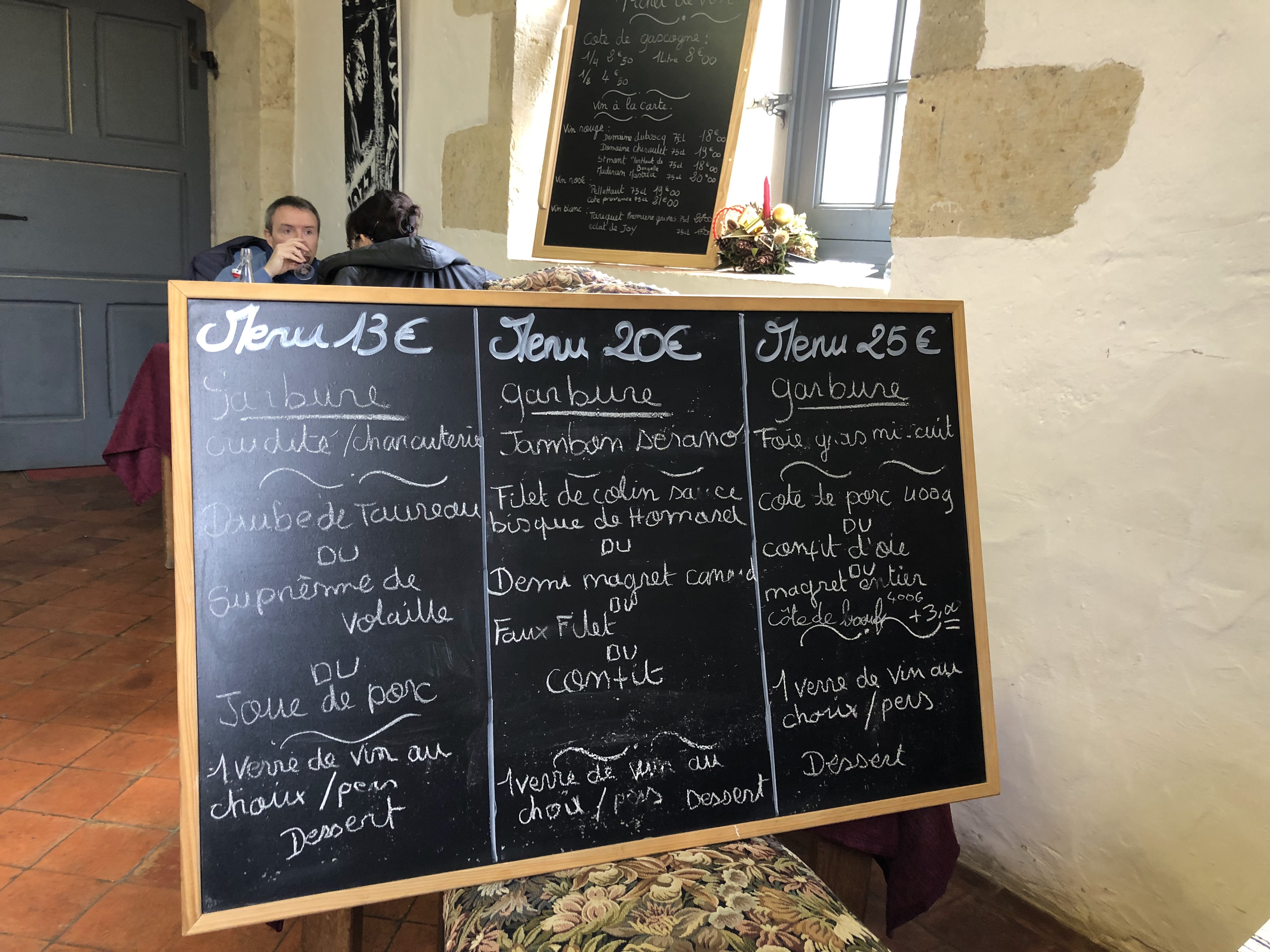 Nous nous sommes arrêtés sur les conseils de personnes bien avisées....et nous n'avons pas été déçu. Nous avons opté pour le menu premier prix et très franchement nous n'avons pas été déçu : garbure, plat de charcuterie accompagné d'un savoureux taboulé libanais , brochette de coeurs de canard et frites maison le tout accompagné d'un bon verre de rosé et pour finir une excellente crème brûlée maison....ce fut notre choix peut être que le votre sera différent le jour de votre passage!? Mais vous ne serez pas déçu ! Après si vous êtes un peu plus gourmand deux menus un peu plus copieux et pour un budget raisonnable sont proposés. Personnellement nous vous recommandons cette halte gourmande située dans un lieux historiques et atypique. L'ensemble du staff est très agréable et est à votre écoute : un grand merci à l'ensemble du personnel 🙏 Nous concernant nous ferons une nouvelle halte avec les futurs beaux jours estiveaux qui nous ferons profiter d'un lounge extérieur ainsi que des grillades😄🌞😄 b. P-B