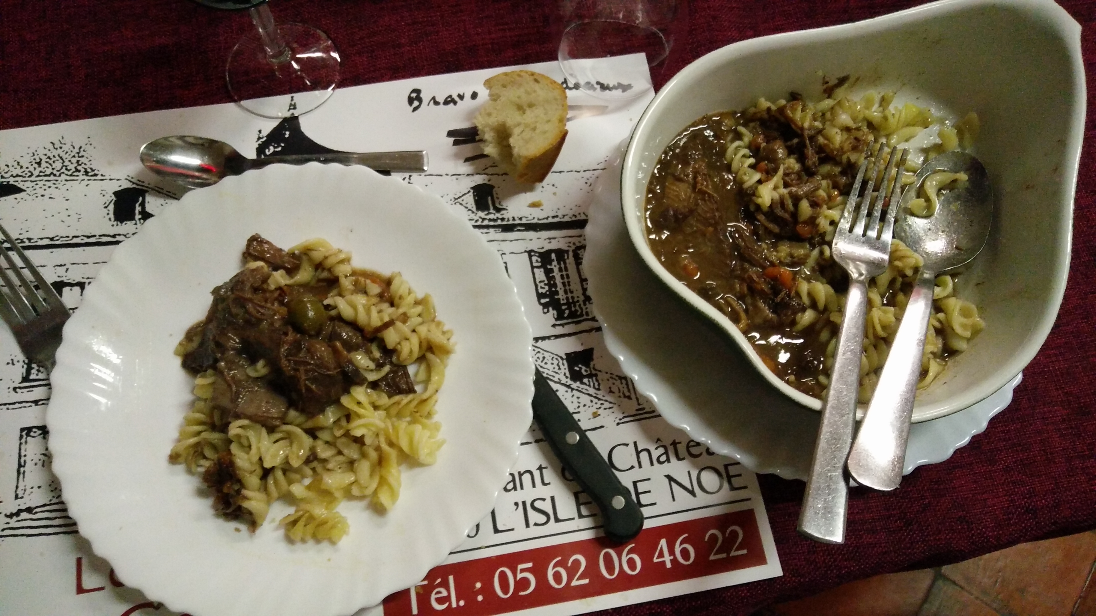 Sur la route de retour des Pyrénées, une adresse extra : rapport qualité prix parfait, menu sympa pour 13 euros vin compris, un patron très professionnel et très soucieux de satisfaire ses clients : une belle équipe à encourager dans la belle cour du château.