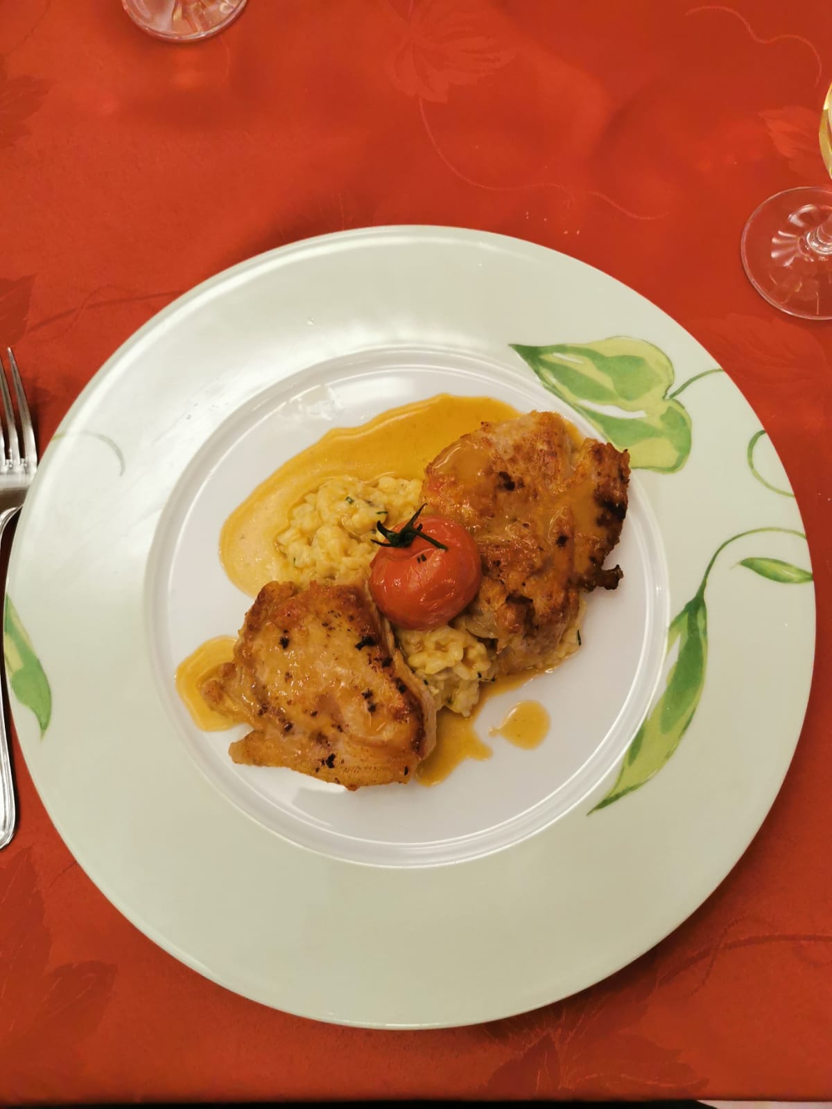 Nous avons vraiment apprécié notre dîner. Le menu à trois plats était à un prix très modéré. La qualité de la nourriture est cependant très bonne. Entrée de poisson (ou escargots), poisson ou veau en plat principal, avec un très fin risotto aux champignons pour accompagner le veau. Le dessert est une petite tarte aux raisins ou une compote de fruits avec des pépites et de la glace à la vanille. Nous sommes heureux de recommander ce restaurant.