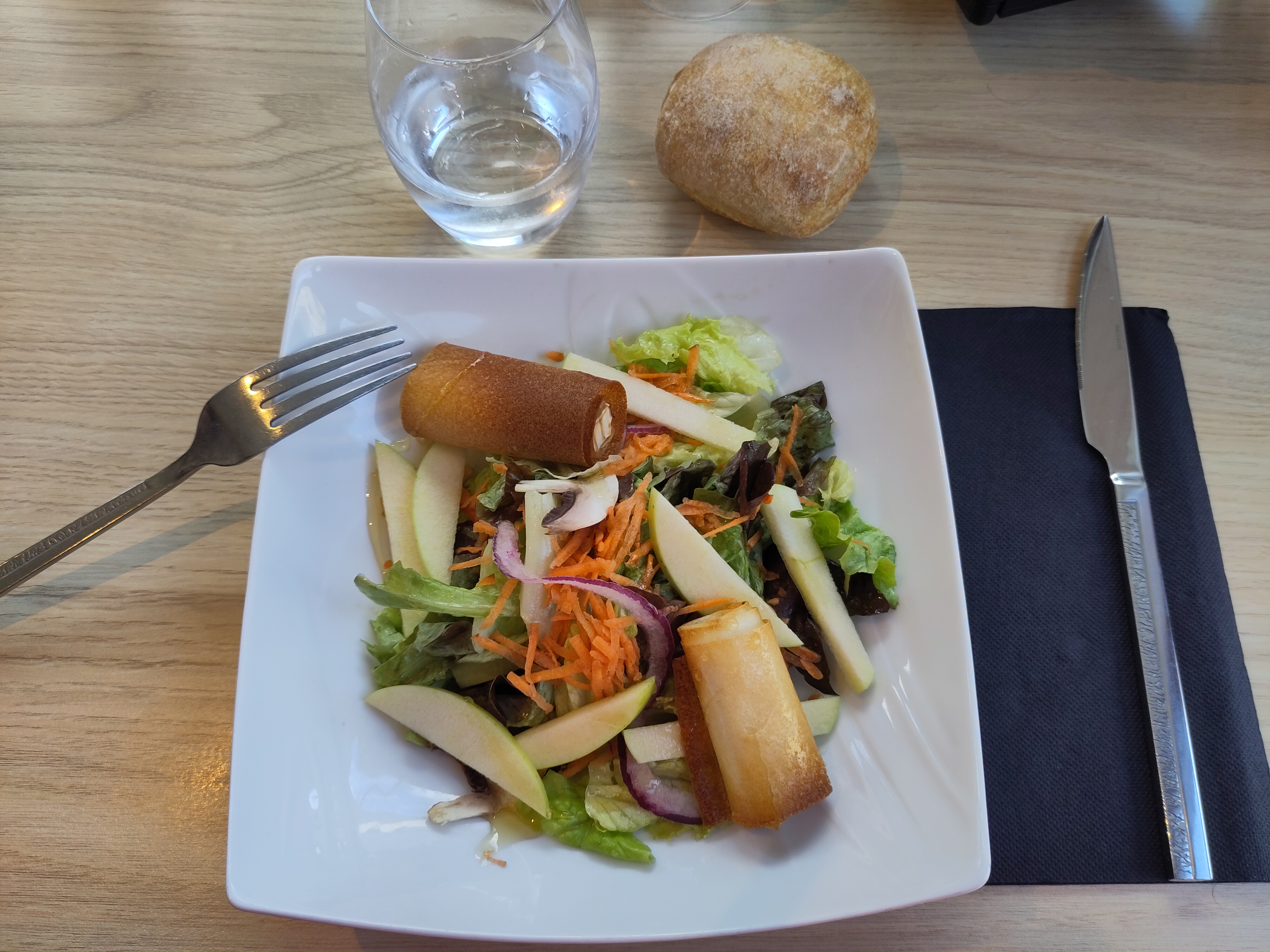 Excellente salade gourmande et dessert crémeux au citron léger et délicieux. De plus accueil super sympa , je recommande chaleureusement!