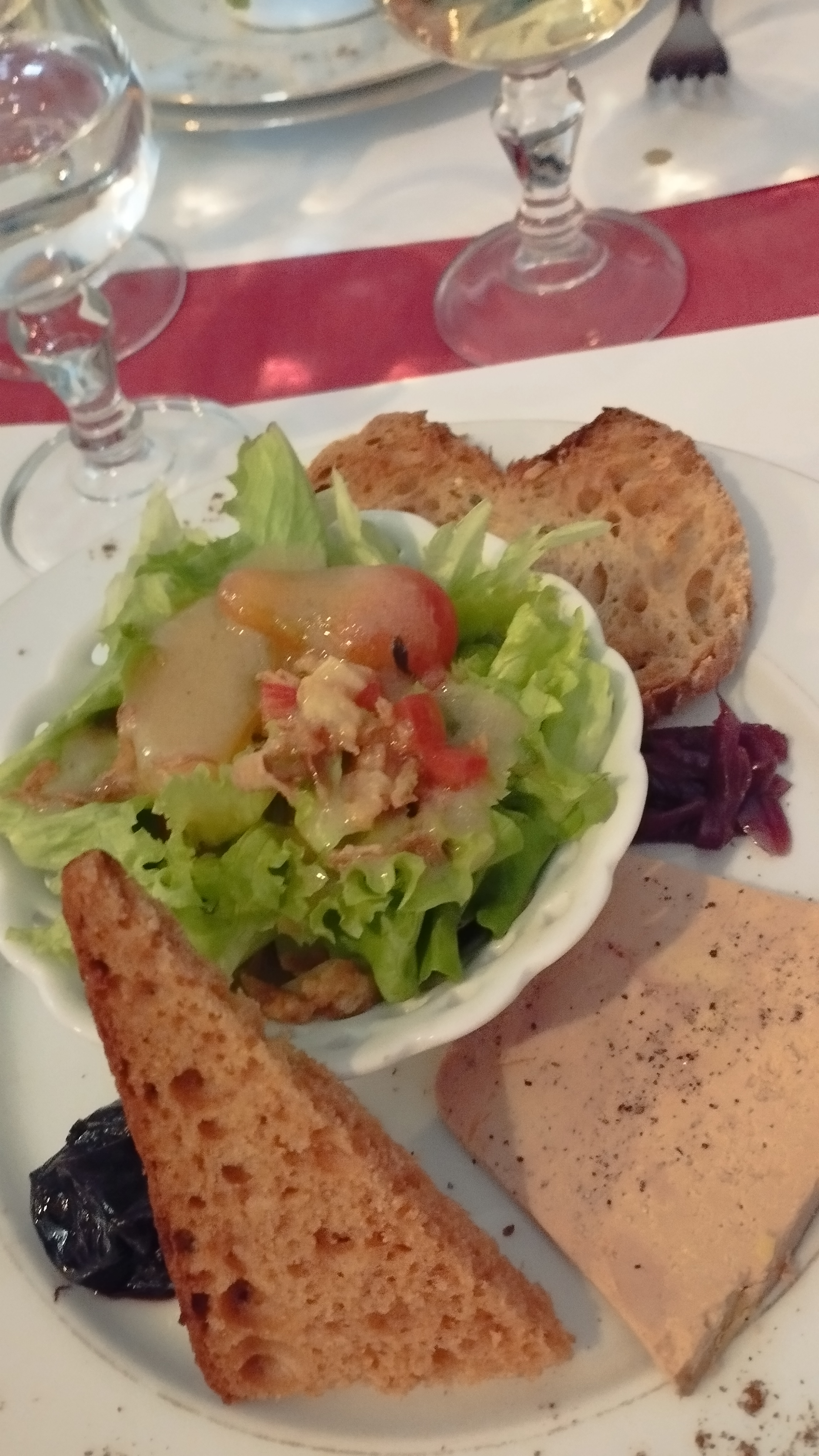 Nous avions déjà mangé dans ce restaurant et il n'y avait pas eu de problèmes. Cette année ce fut très décevant!!!! Nous avons mangé avec groupe de plusieurs dizaines de personnes pour la Ronde des crèches, quelle fut notre déception! Faute de places, le groupe a été séparé... les personnes étaient entassées, aucun passage était possible. Salle très bruyante. Apéritif: dans un verre carton à café à moitié rempli et chaud... entrée: soupe d'une louche servi dans bol plastique, puis bloc de mousse de foie gras avec salade flétrie, plat principal rosbif coupé très très fin, petite tomate et minuscule gratin, petit morceau de camembert très sec, dessert gâteau au chocolat part coupée en deux pour donner du volume... café jus de chaussette. Service médiocre, en bout de table faute de passage pour les serveuses. Prix excessif pour une piètre qualité et la prestation dinette pas digne d'un restaurant. Une remise en question est nécessaire pour l'avenir...