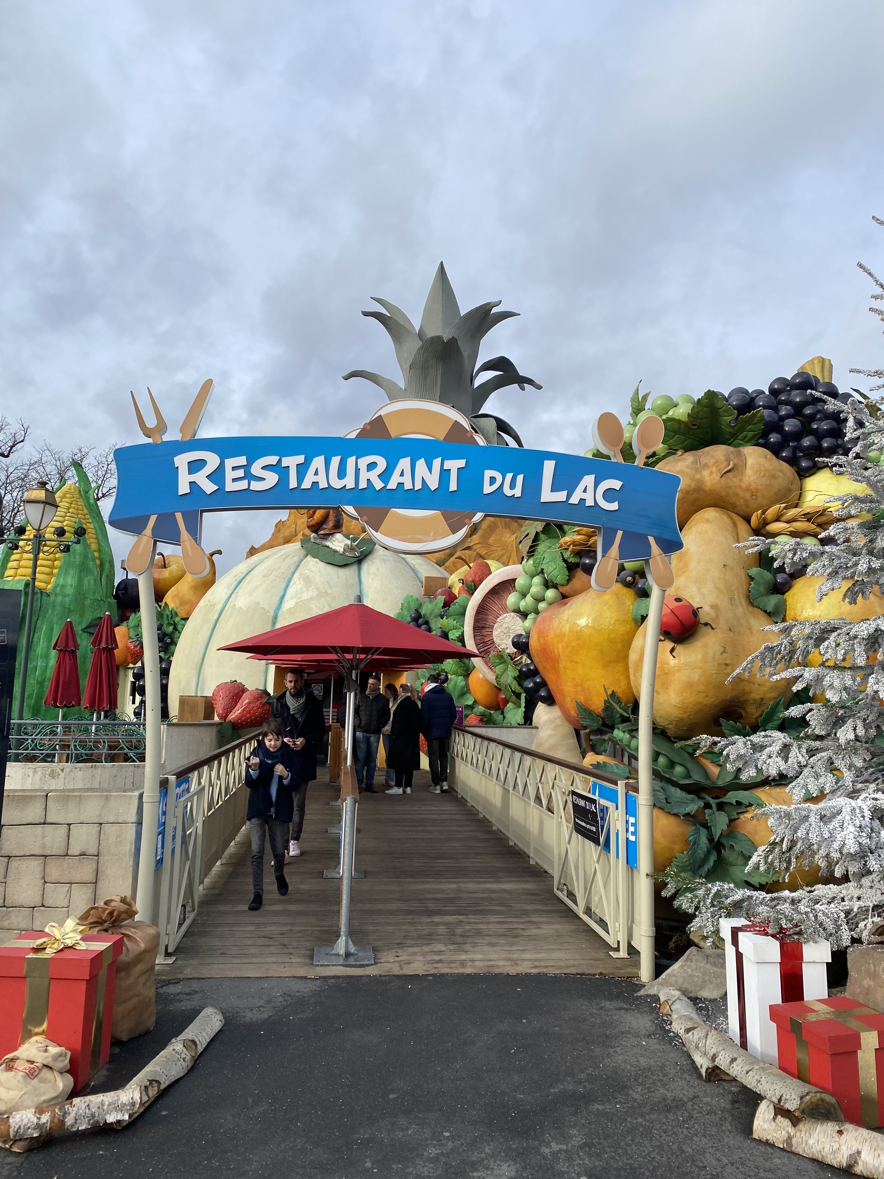 Un établissement de restauration très spécial à voir est Le Restaurant du Lac. Nous pensons qu'il devrait être nommé Corne d'abondance (corne d'abondance) en référence au style de dénomination du parc, il est effectivement proche du lac mais les gigantesques morceaux de fruits et légumes sont l'élément le plus important et peuvent être vus de loin. Design unique et également très réaliste de près. Le restaurant est entouré de nombreuses tables sur une grande terrasse extérieure recouverte en permanence de parasols colorés, ce qui lui donne un aspect estival. Nous n'avons pas apprécié un bon dîner ici, mais le design mérite à lui seul quatre étoiles.